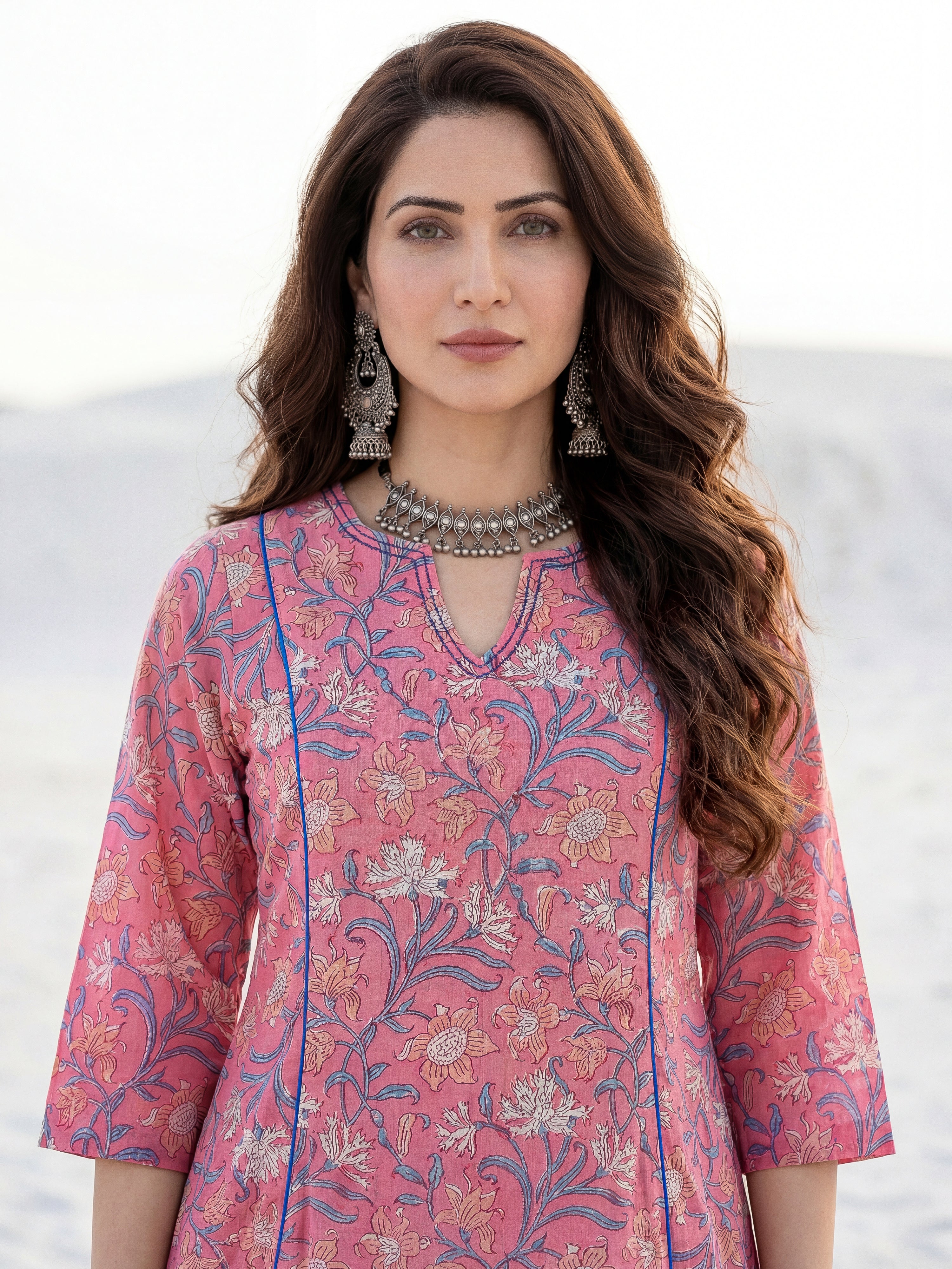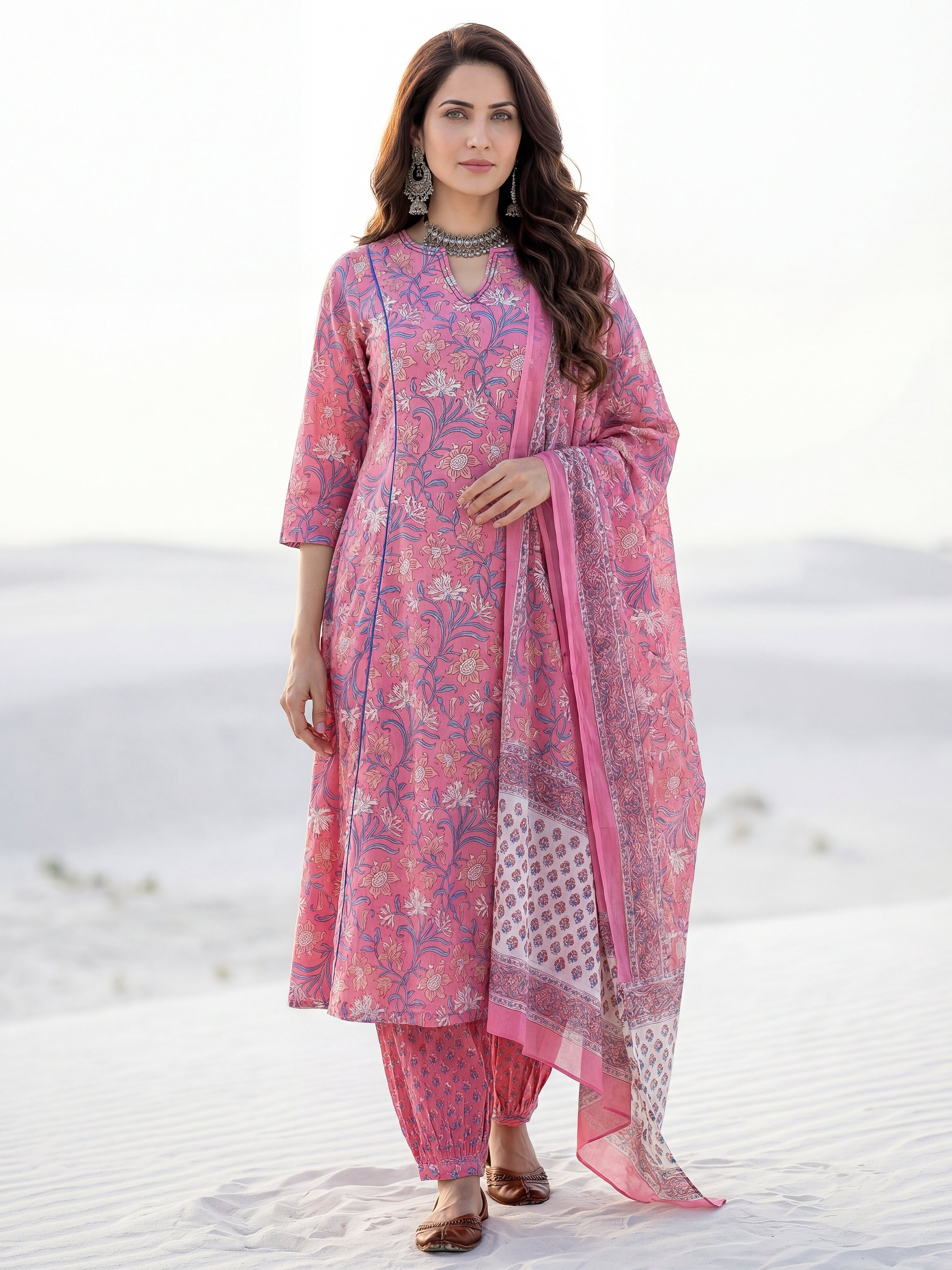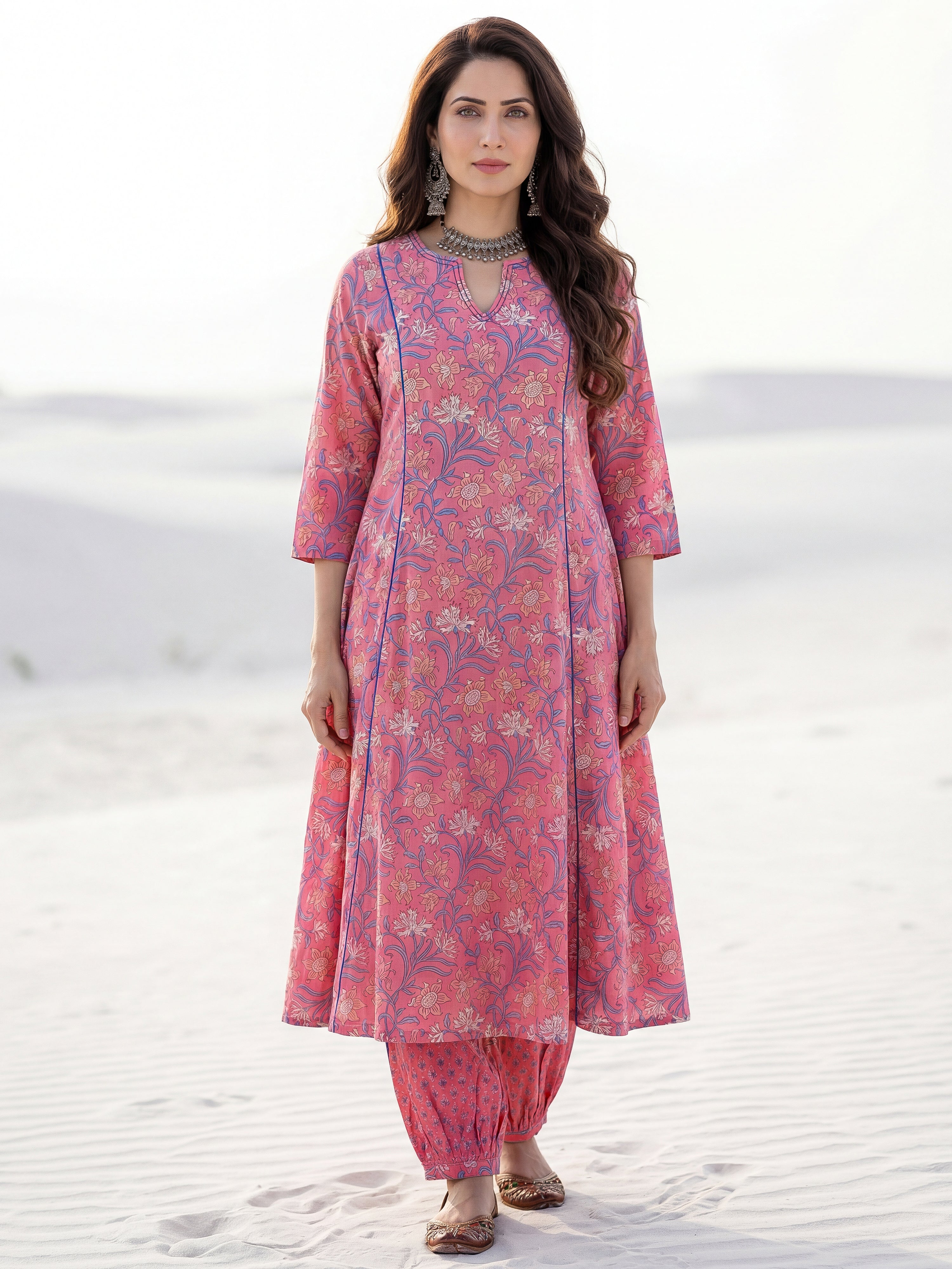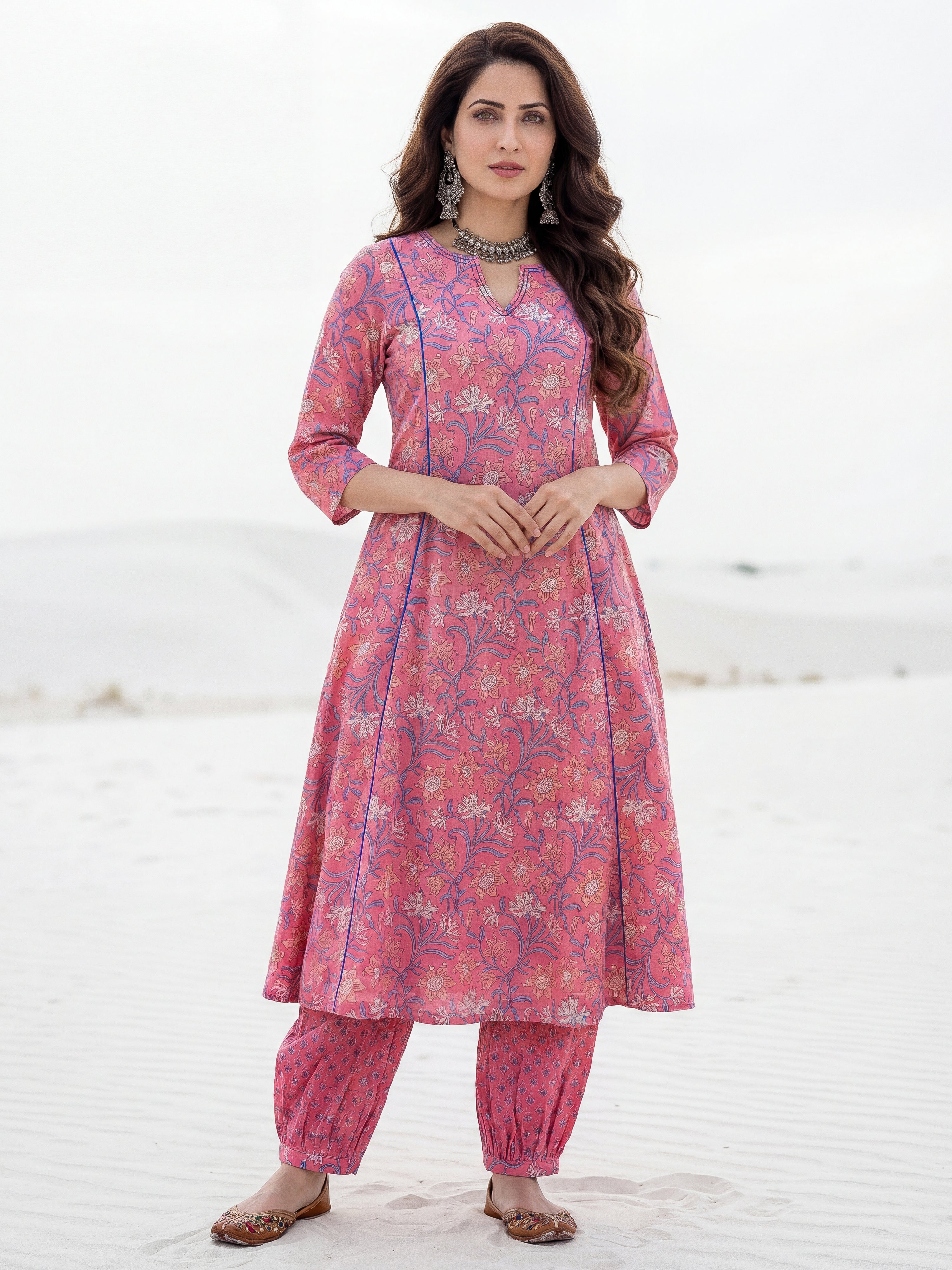 Product: This set contains Hand Block Printed Premium Cotton Kurta, 100% Cotton Pants and Cotton Mulmul Dupatta.