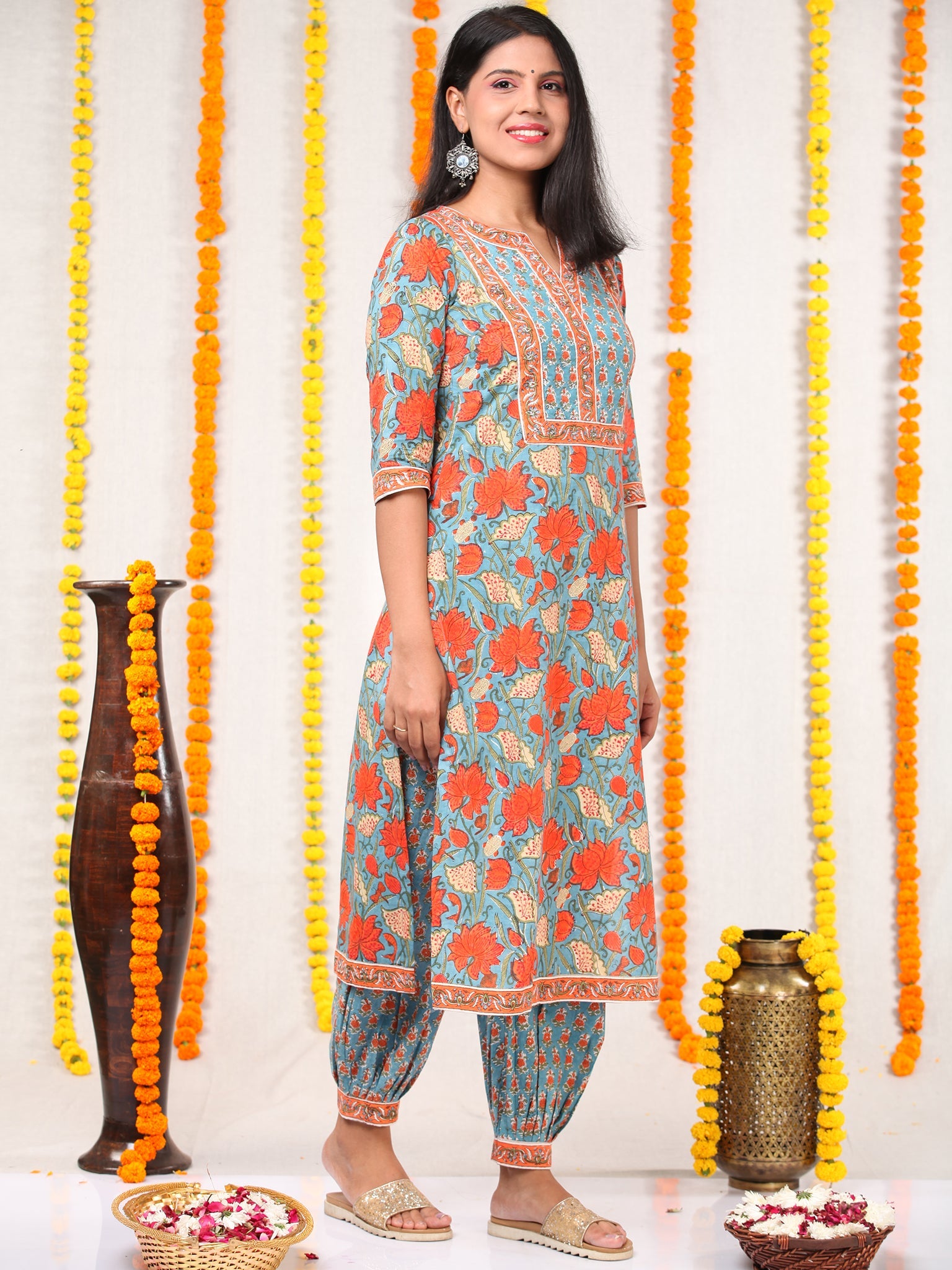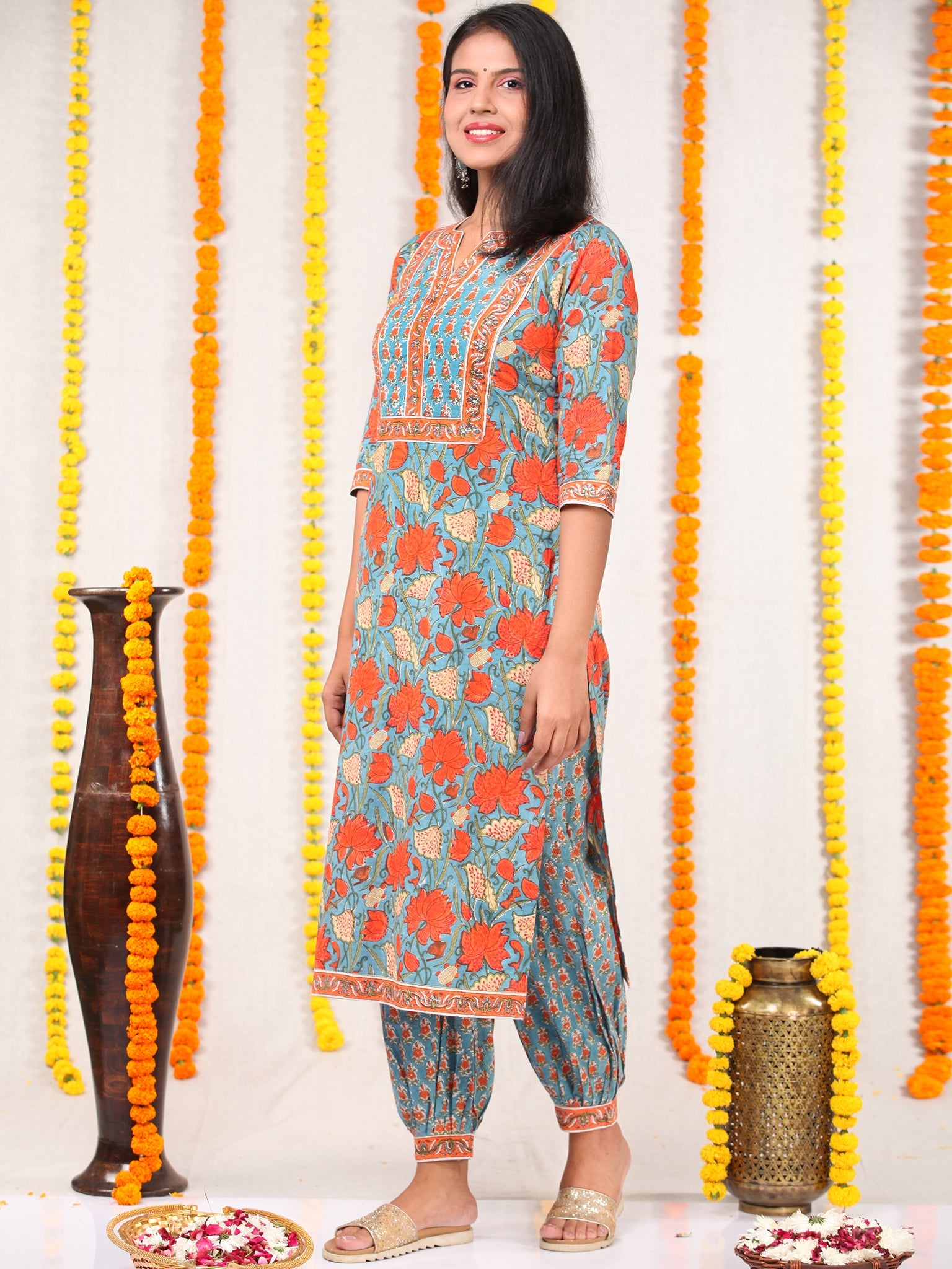 Pants : 100% Cotton. Hand Block Printed.