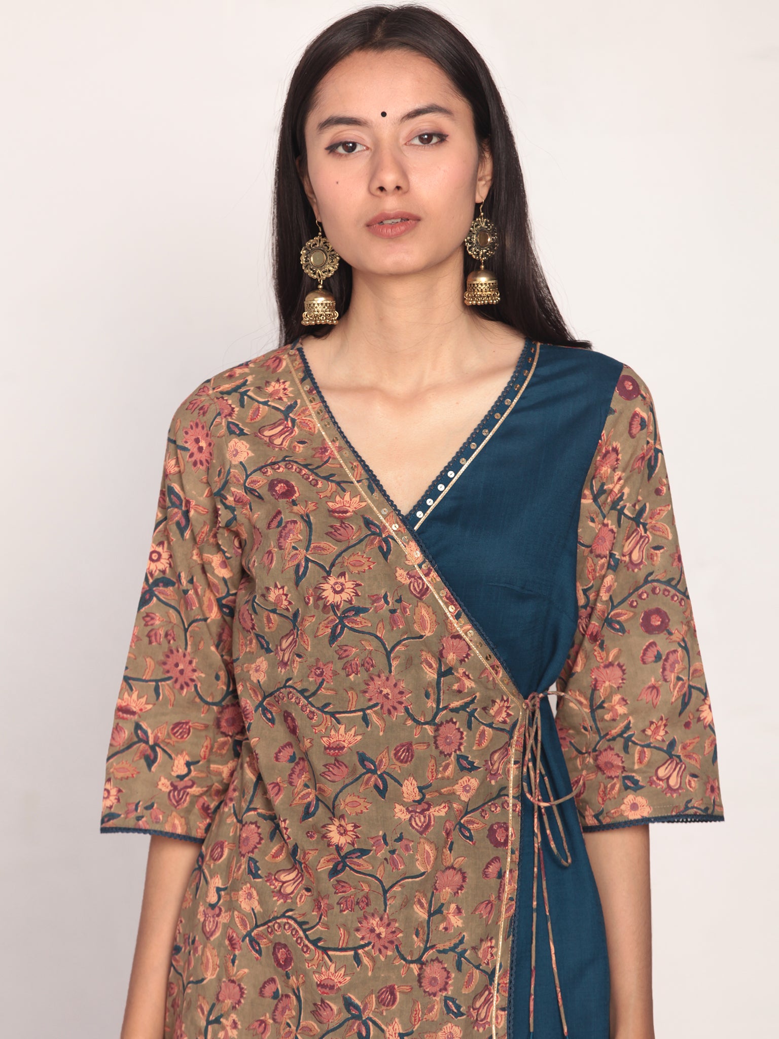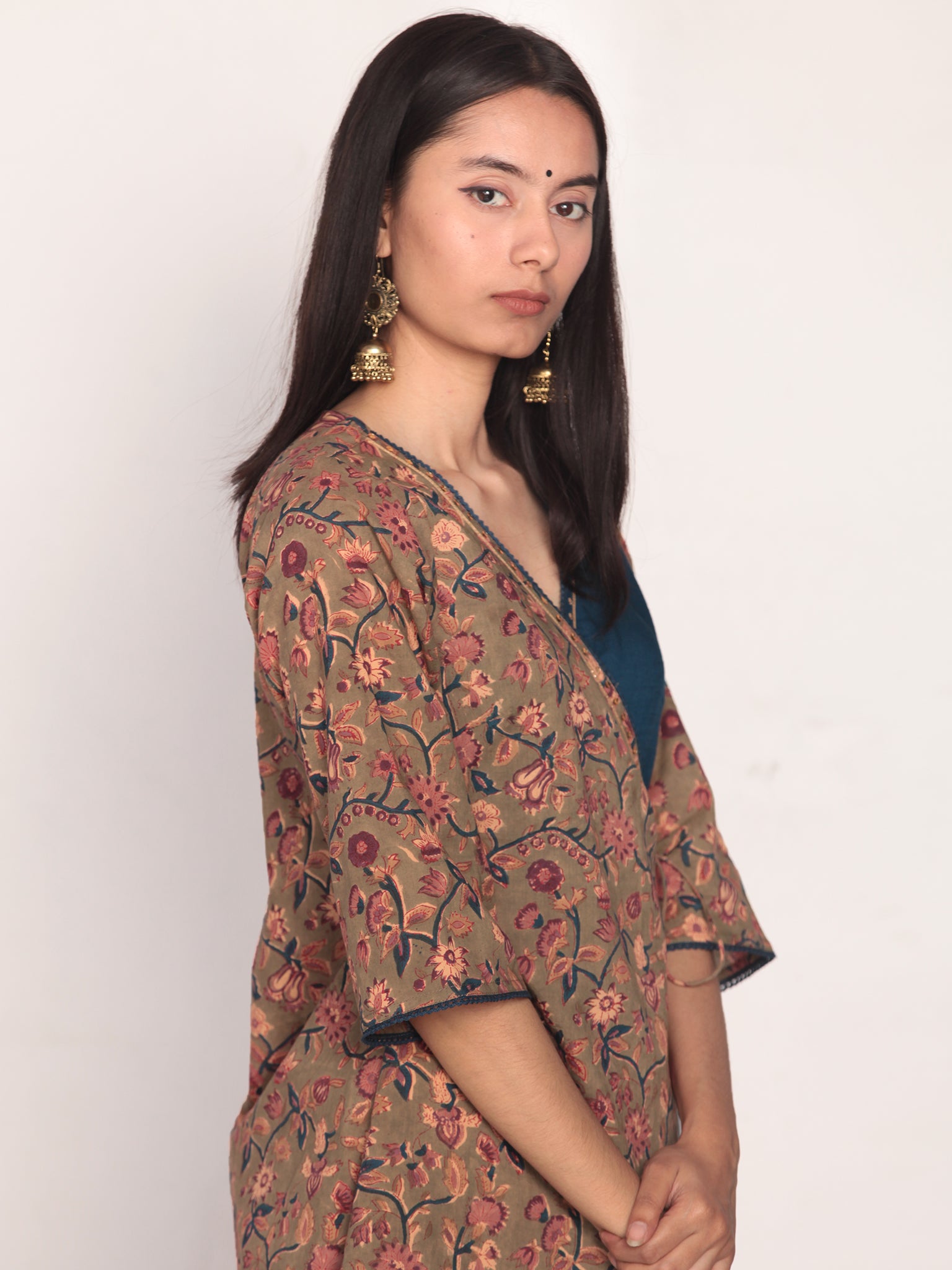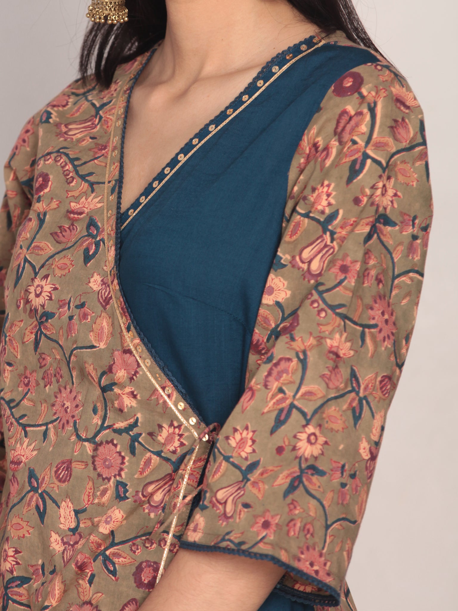 Product: This set contains Handcrafted Sanganeri Premium Cotton Kurta, Sharara and Kota Doria Dupatta