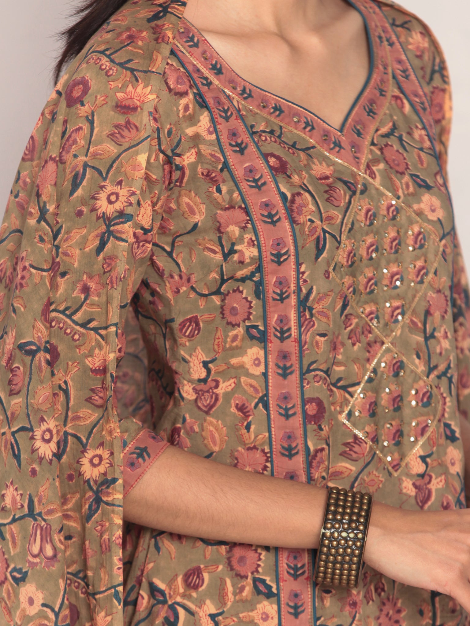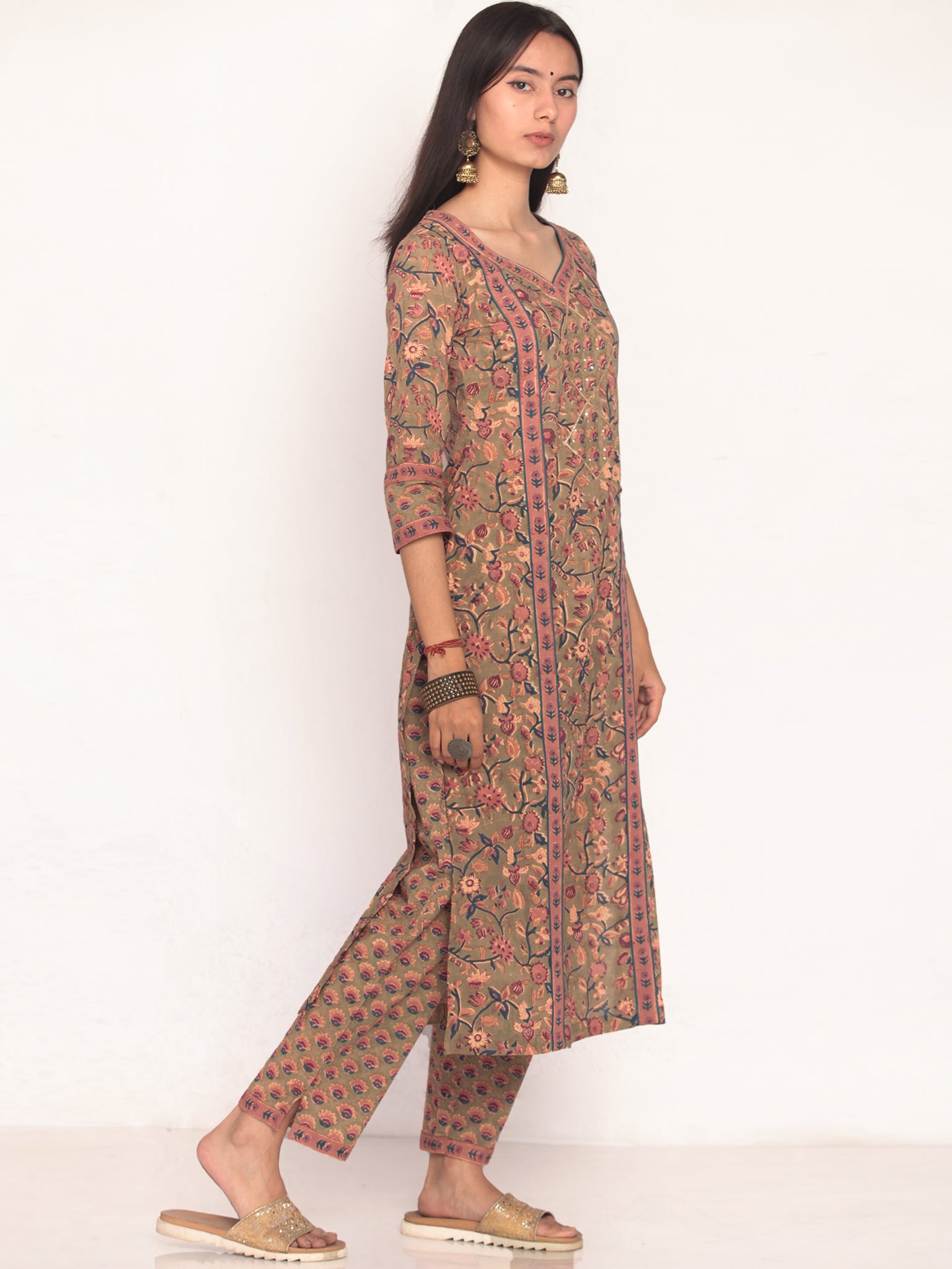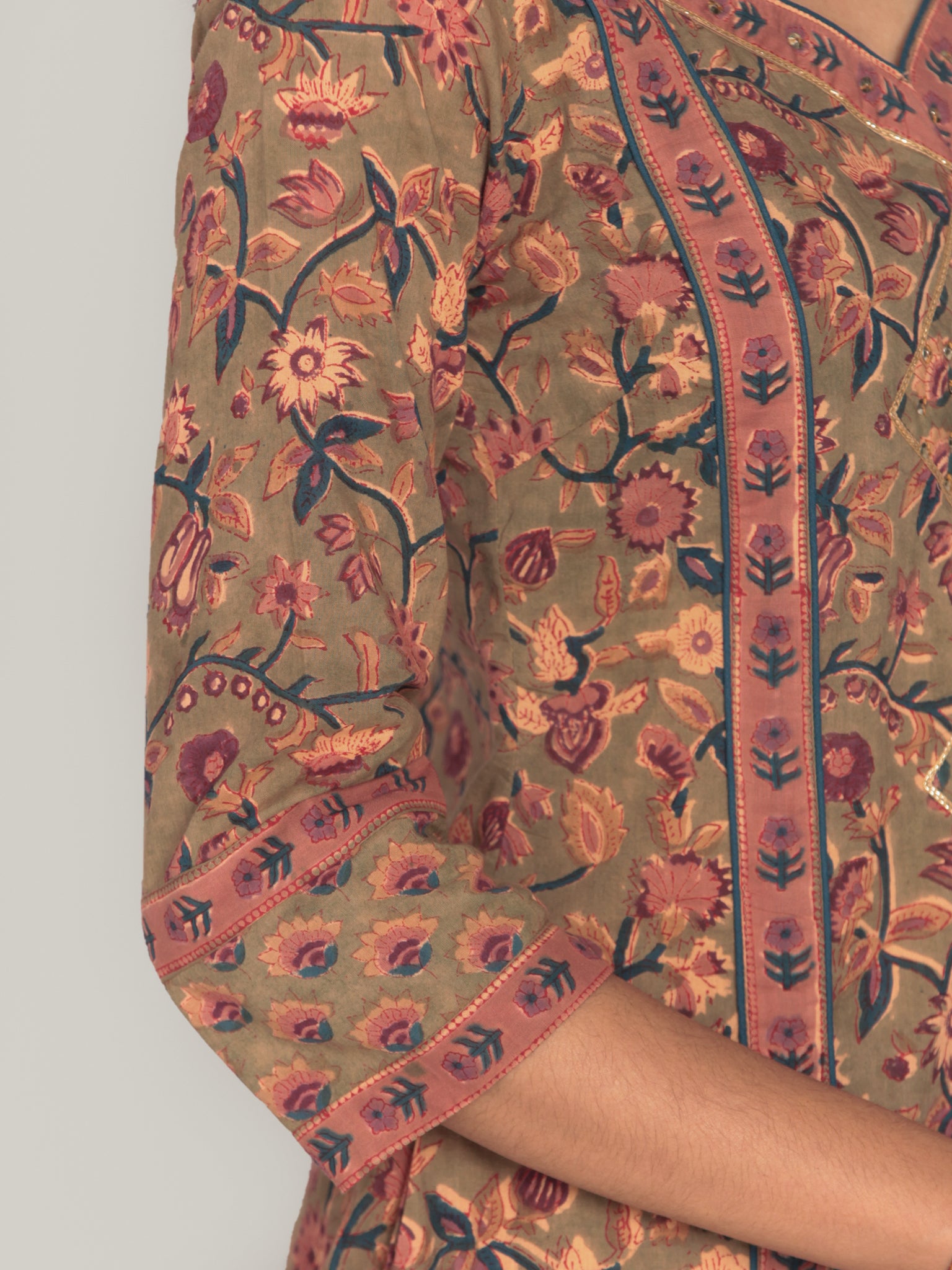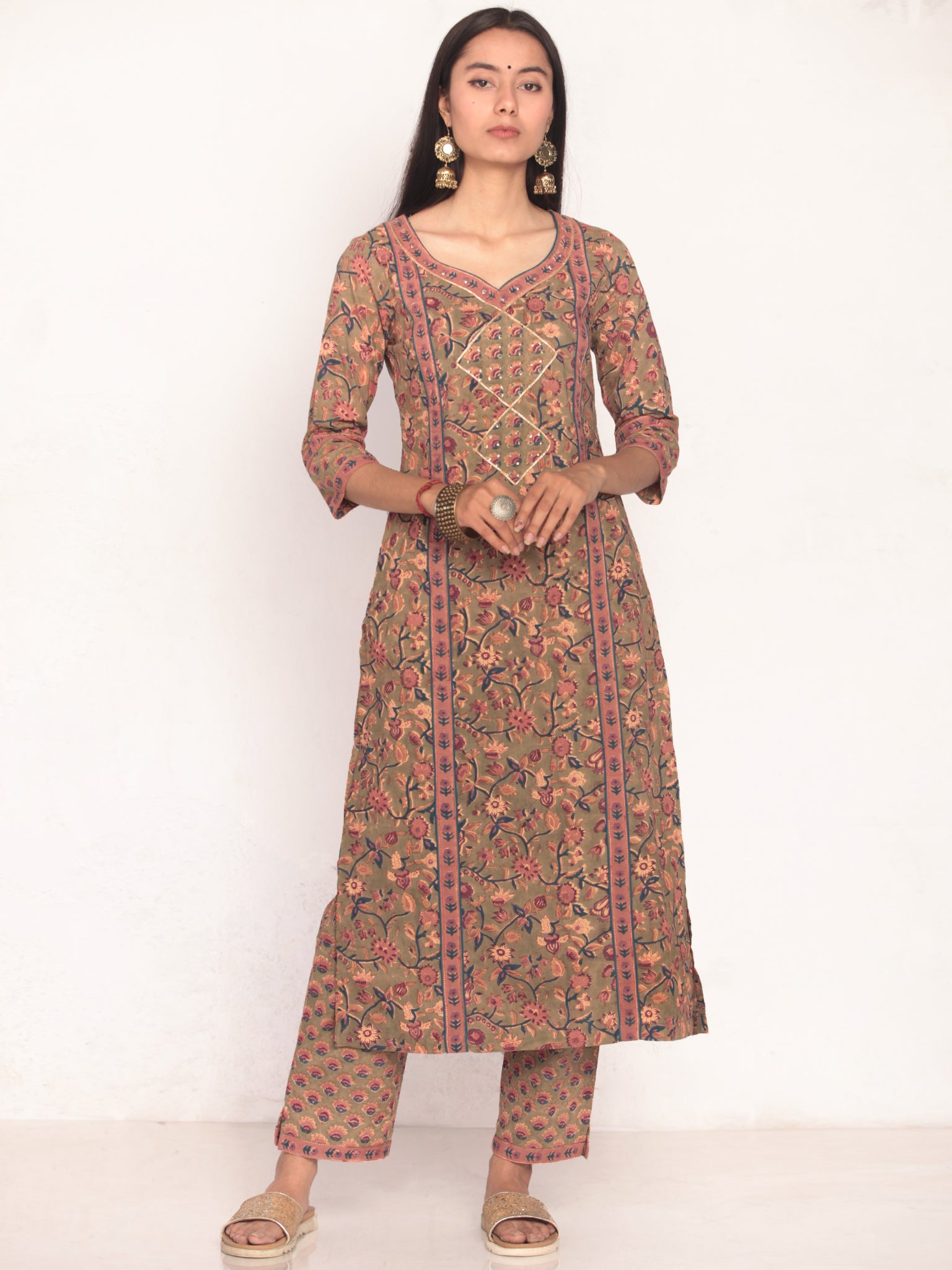 Product: This set contains Handcrafted Sanganeri Premium Cotton Kurta, 100% Cotton Pants and Cotton Dupatta.