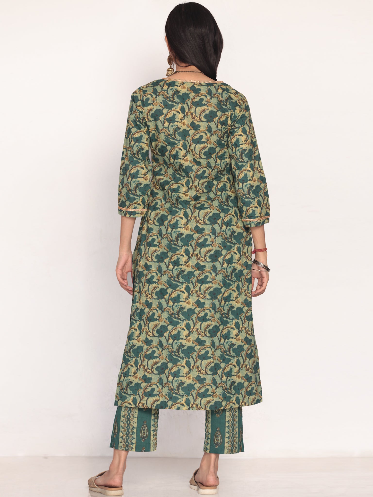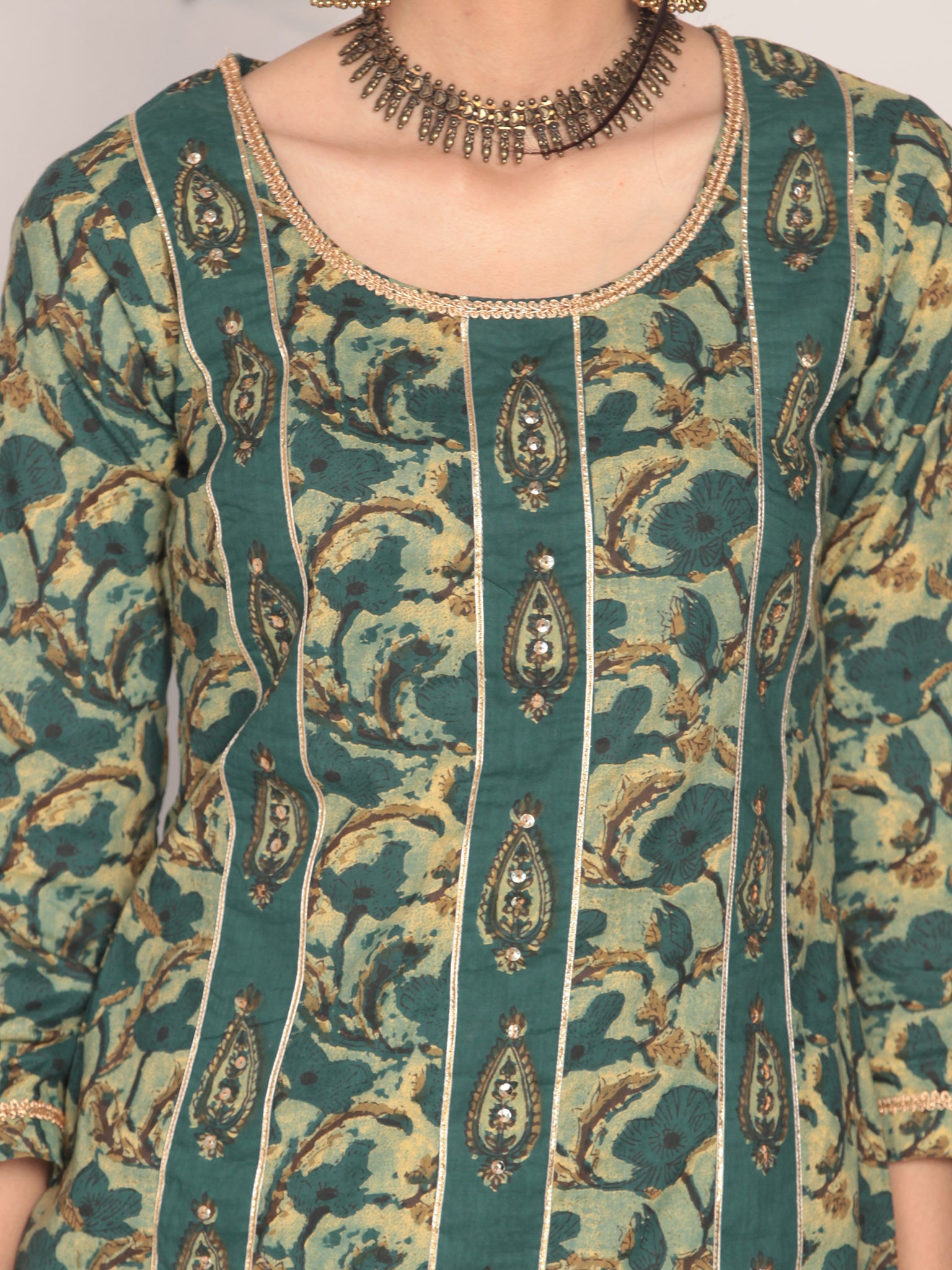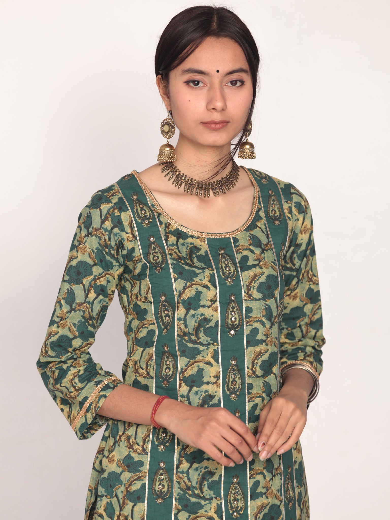 Product: This set contains Handcrafted Sanganeri Premium Cotton Kurta, 100% Cotton Pants and Chiffon Dupatta.