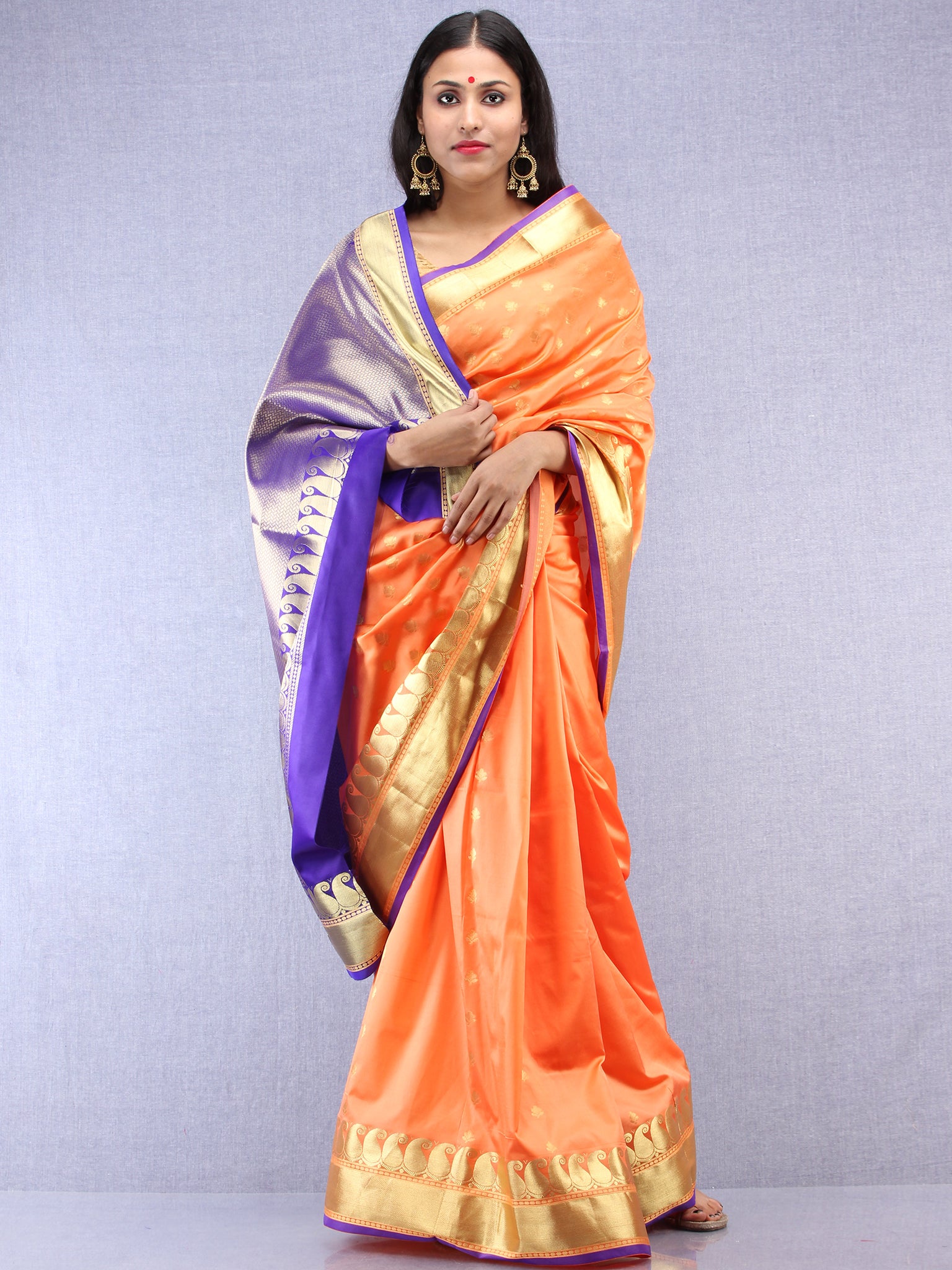 Banarasee Art Silk Saree With Zari Work - Peach Blue & Gold - S031704415