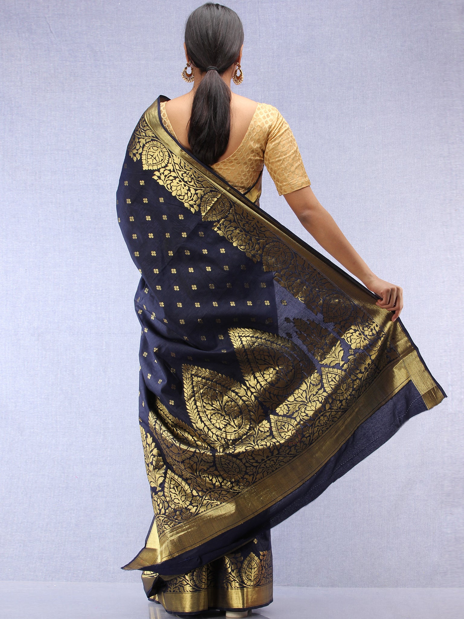 Banarasee Semi Silk Saree With Zari Border - Navy Blue Gold - S031704384