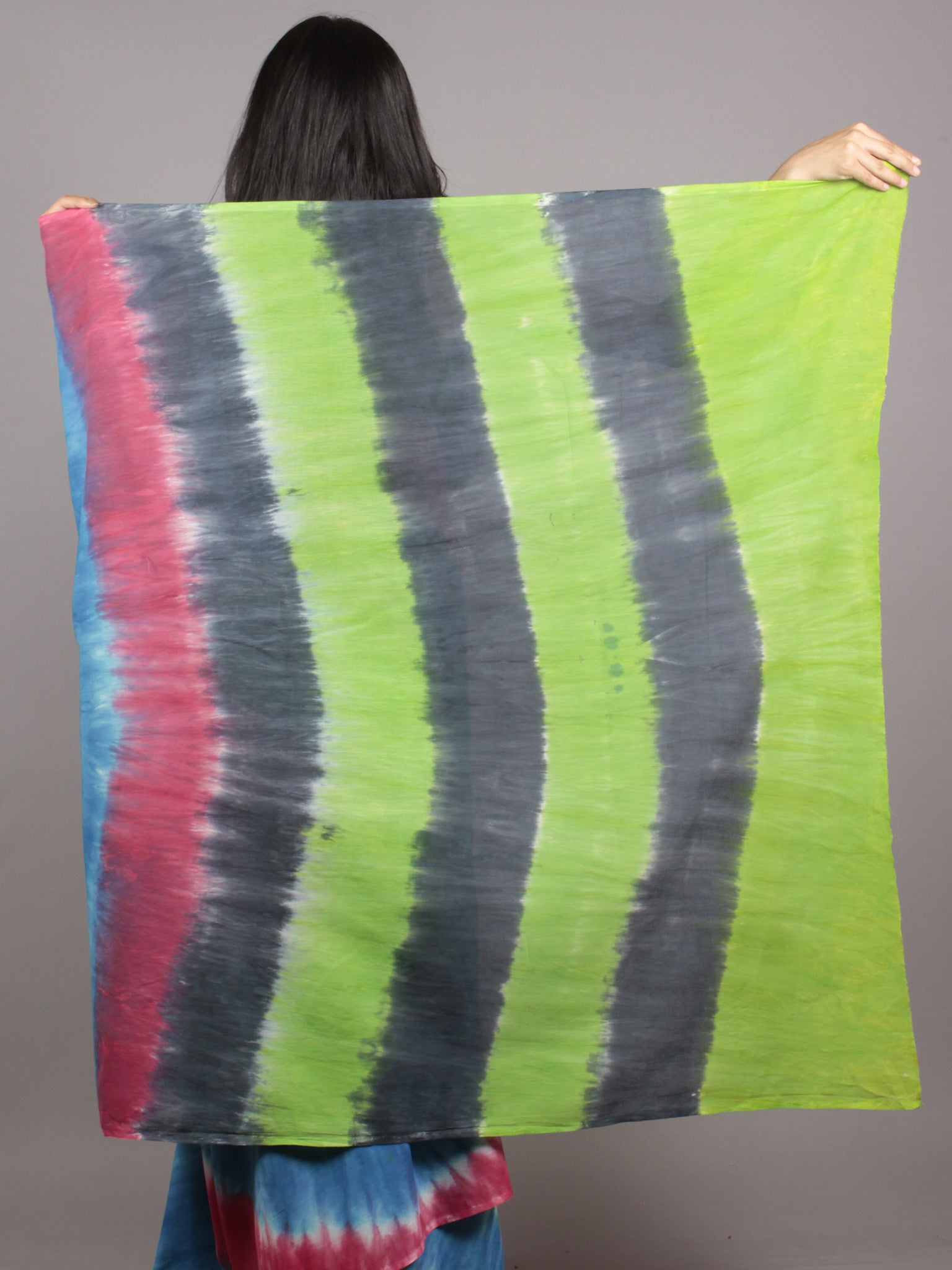 Blue Green Maroon Grey Hand Shibori Dyed Cotton Saree - S031701574