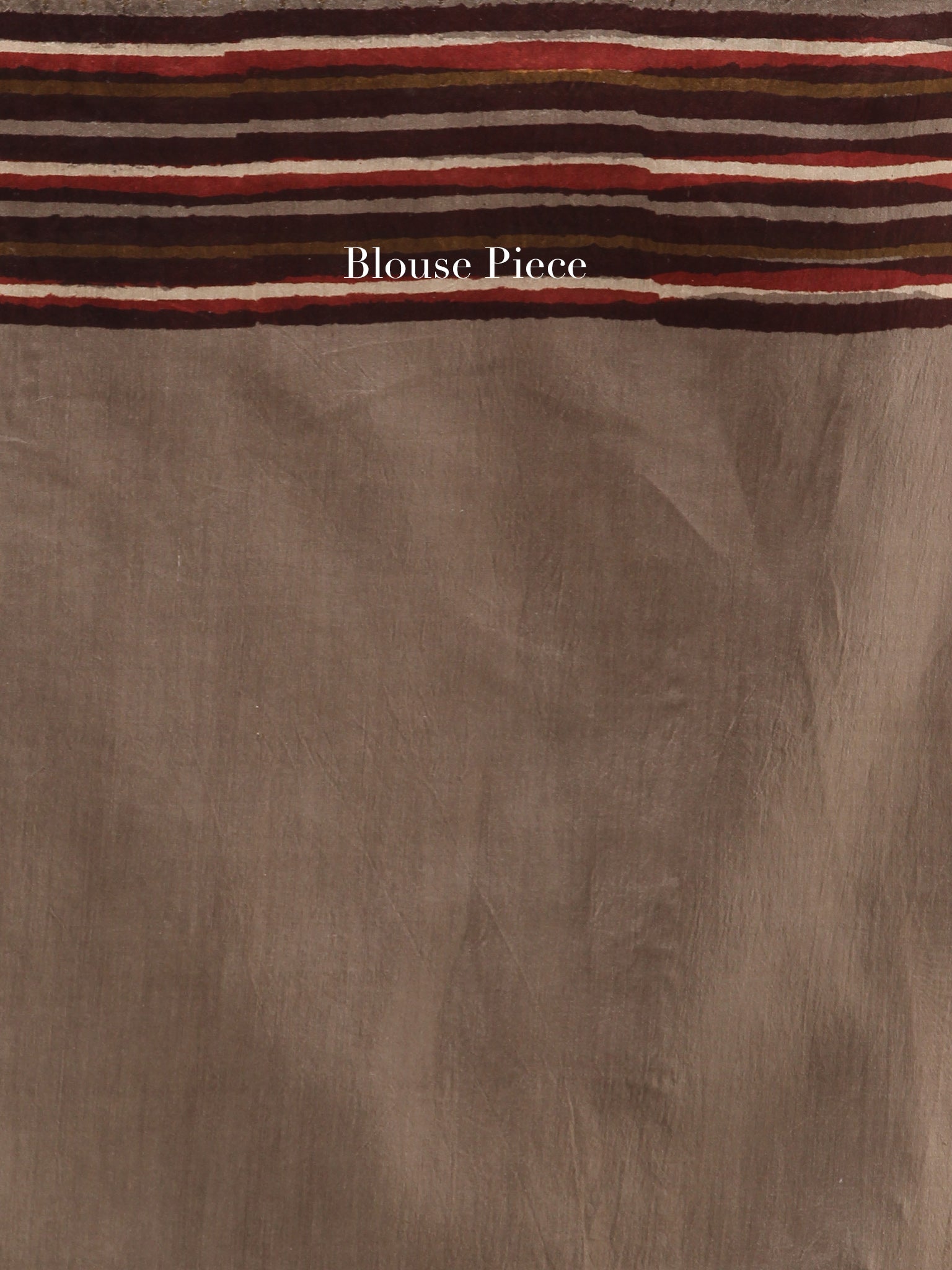 Brown Maroon Hand Block Printed Chanderi Saree With Geecha Border - S031704494