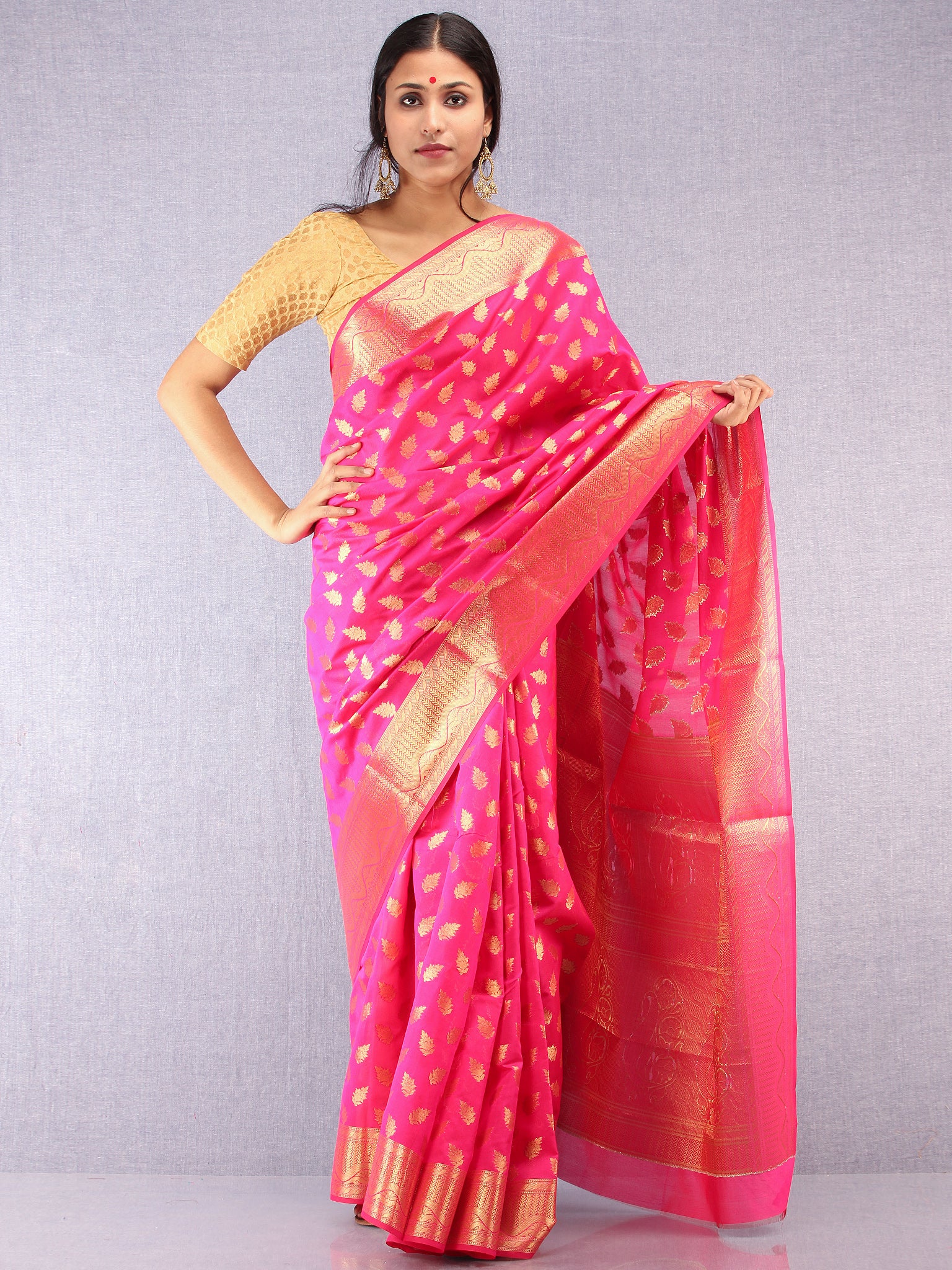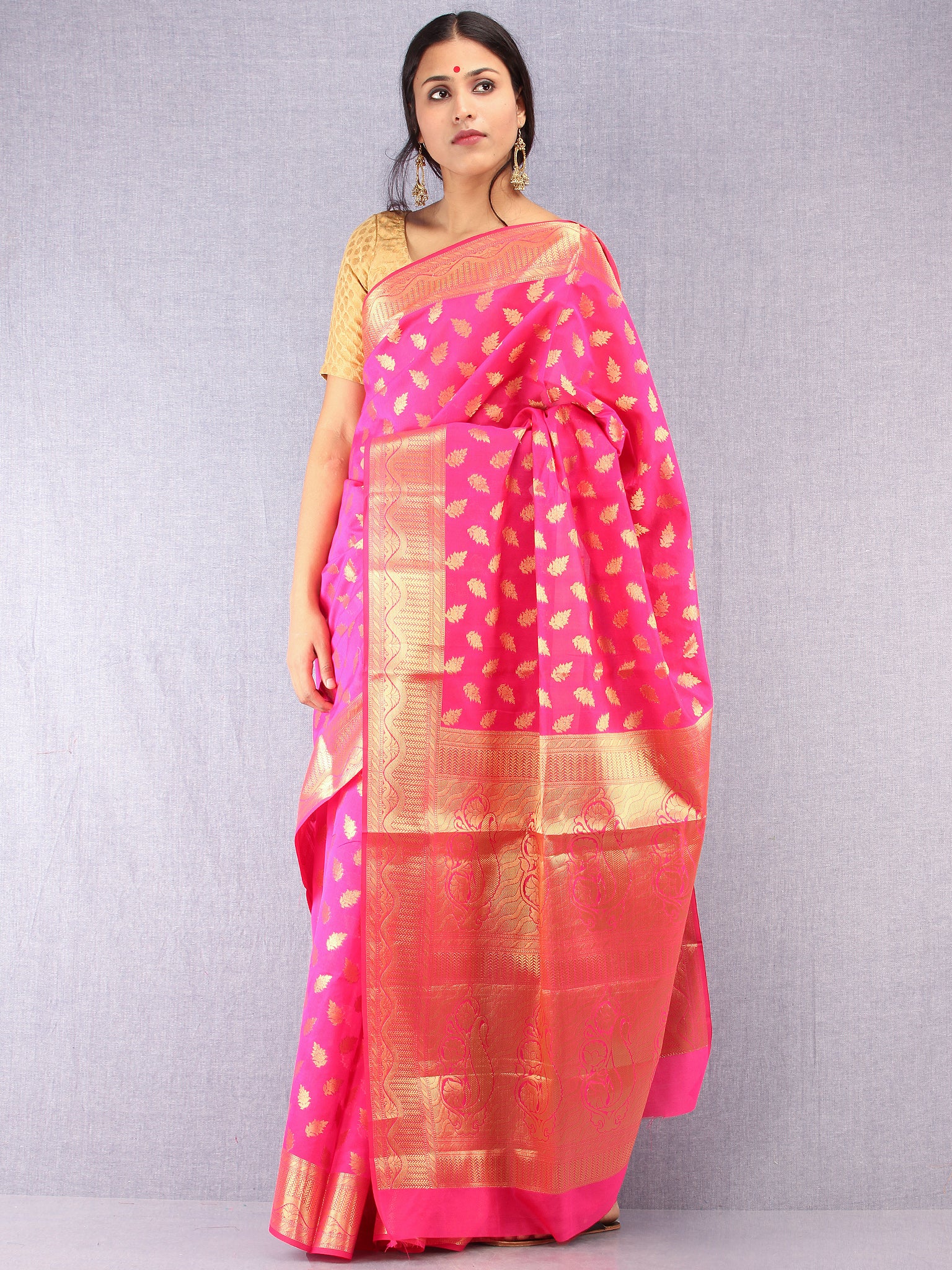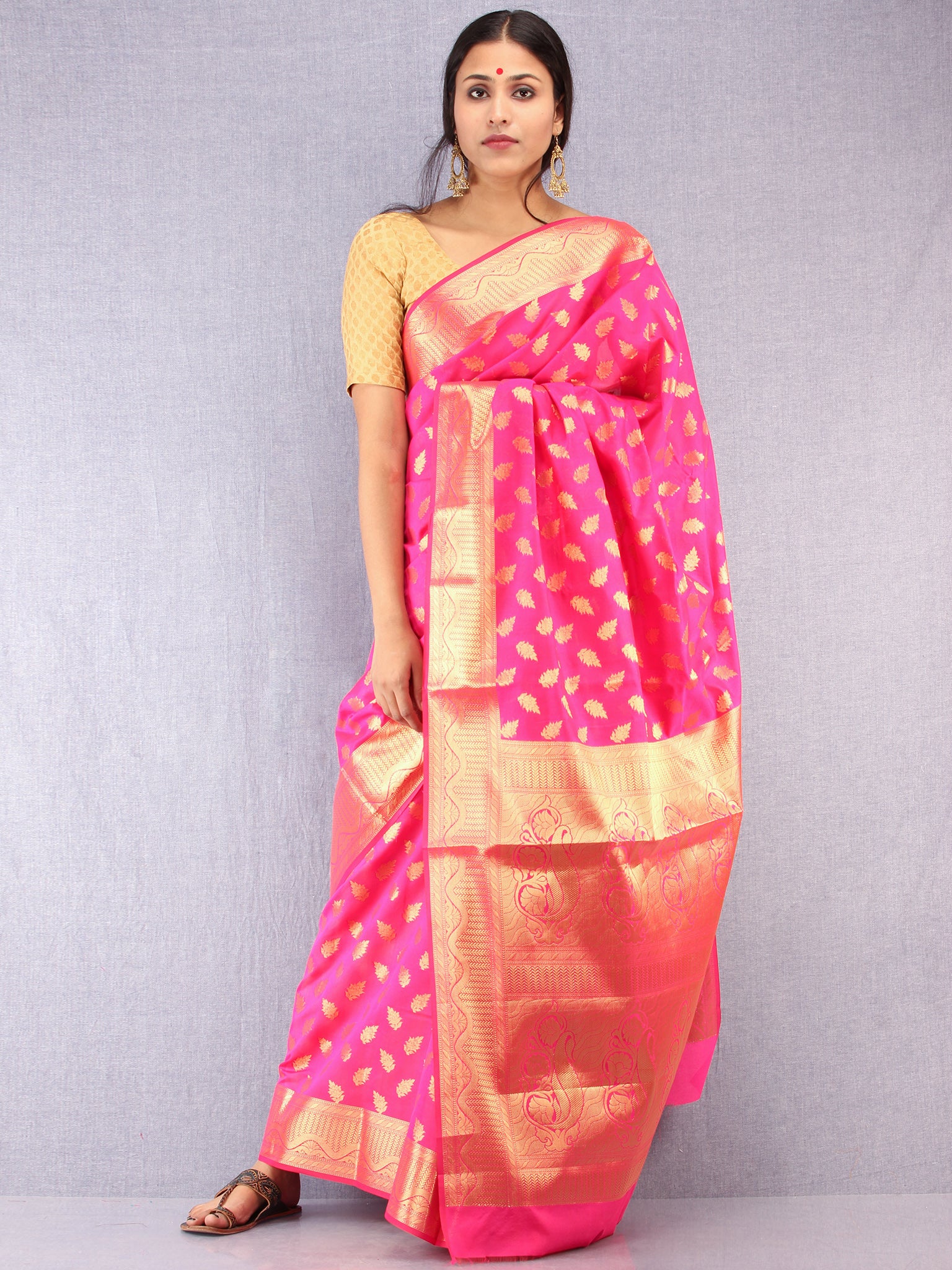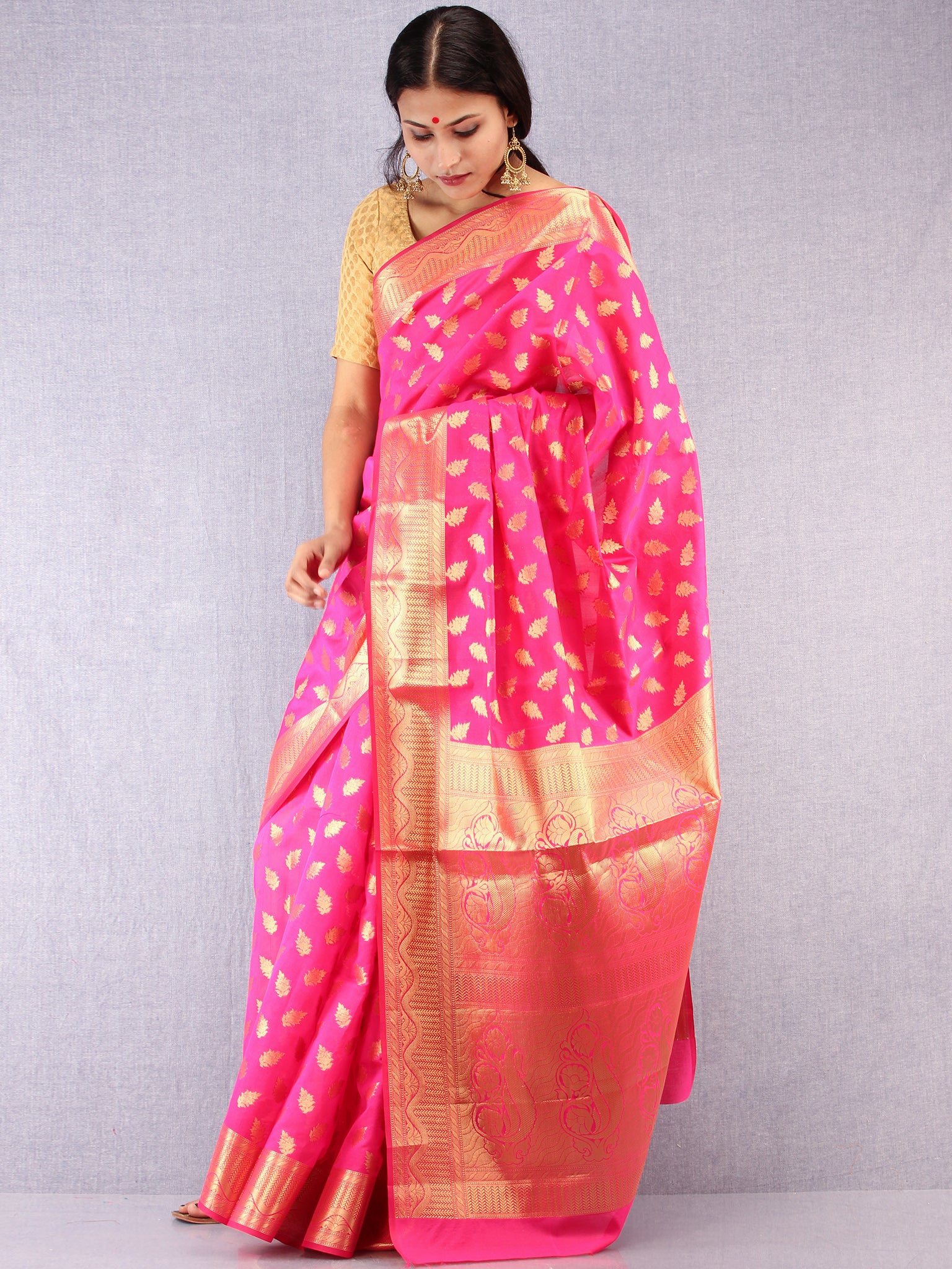 Banarasee Semi Silk Saree With Zari Work - Hot Pink & Gold - S031704370