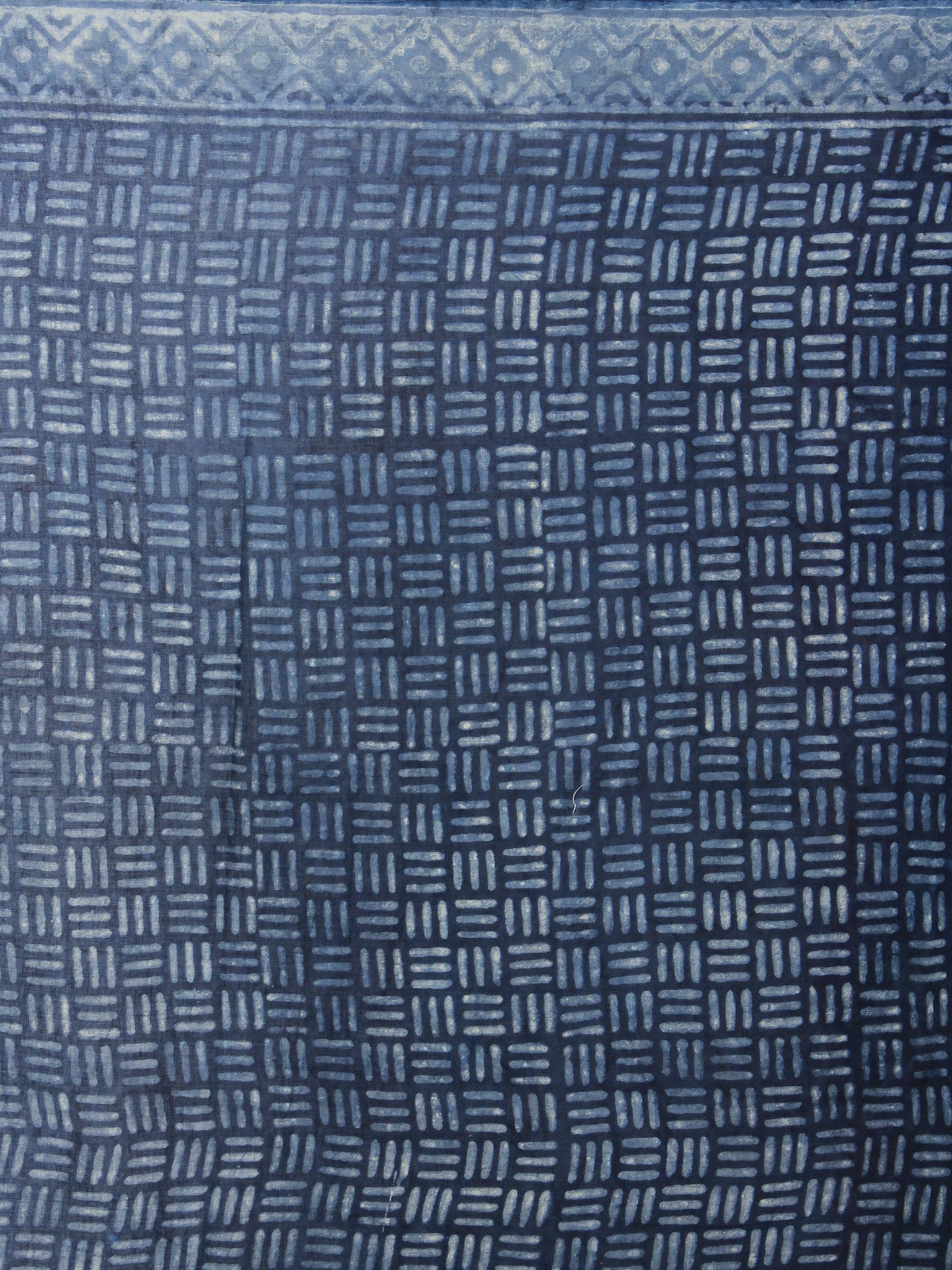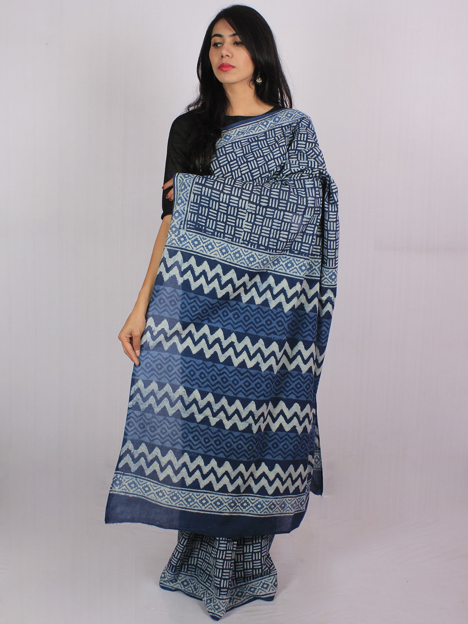 Indigo Ivory Cotton Hand Block Printed Saree in Natural Colors - S031701191