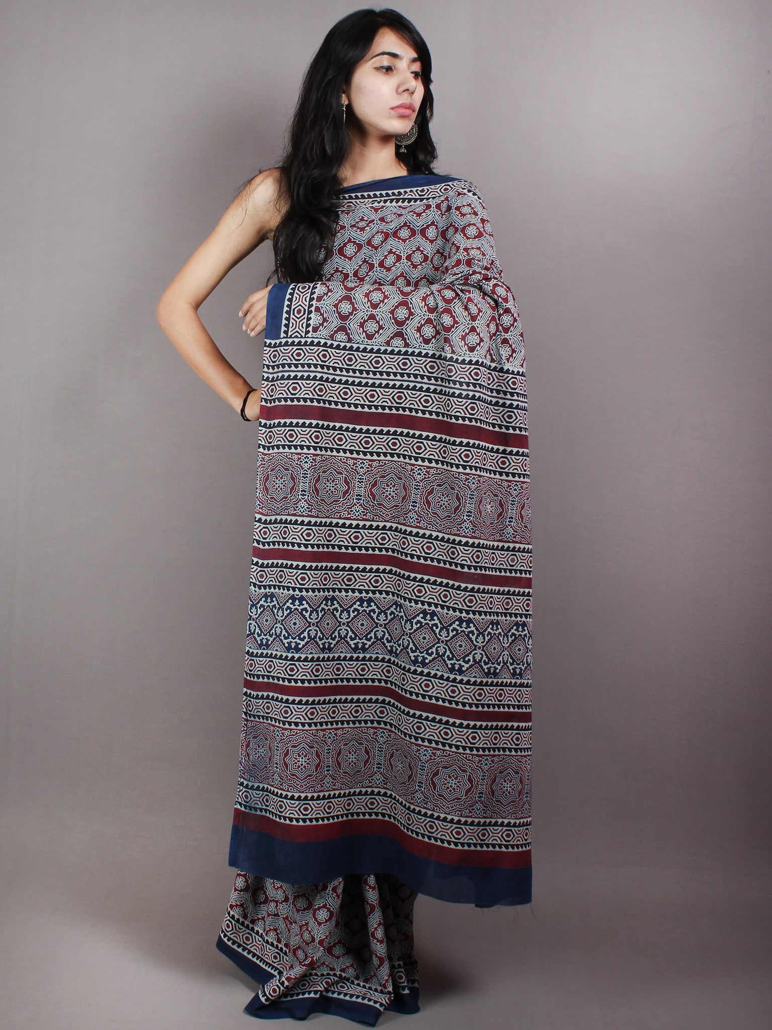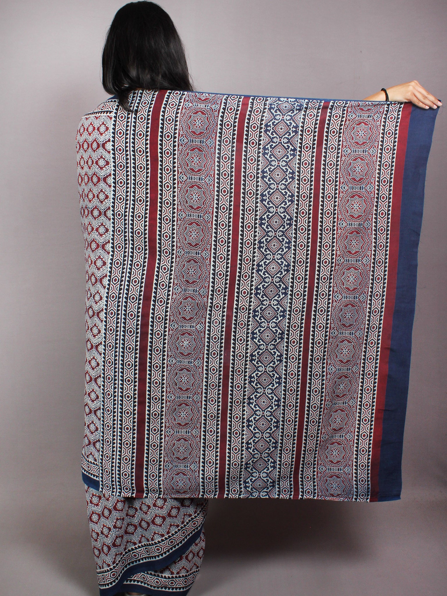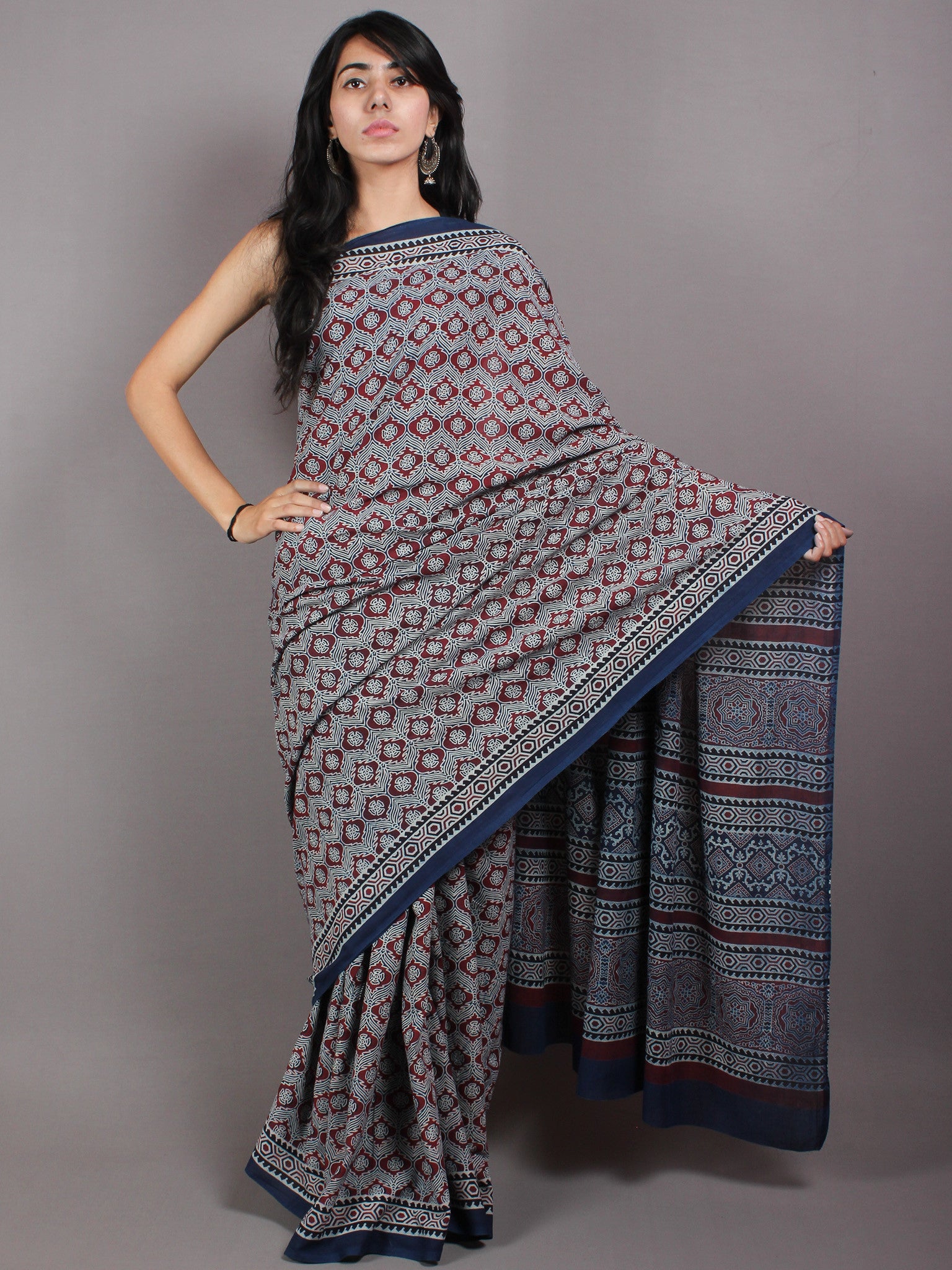 PRODUCT: Saree is Ajrakh Hand Block Printed, dyed in Natural Colors by Artisans in Barmer, Rajasthan.