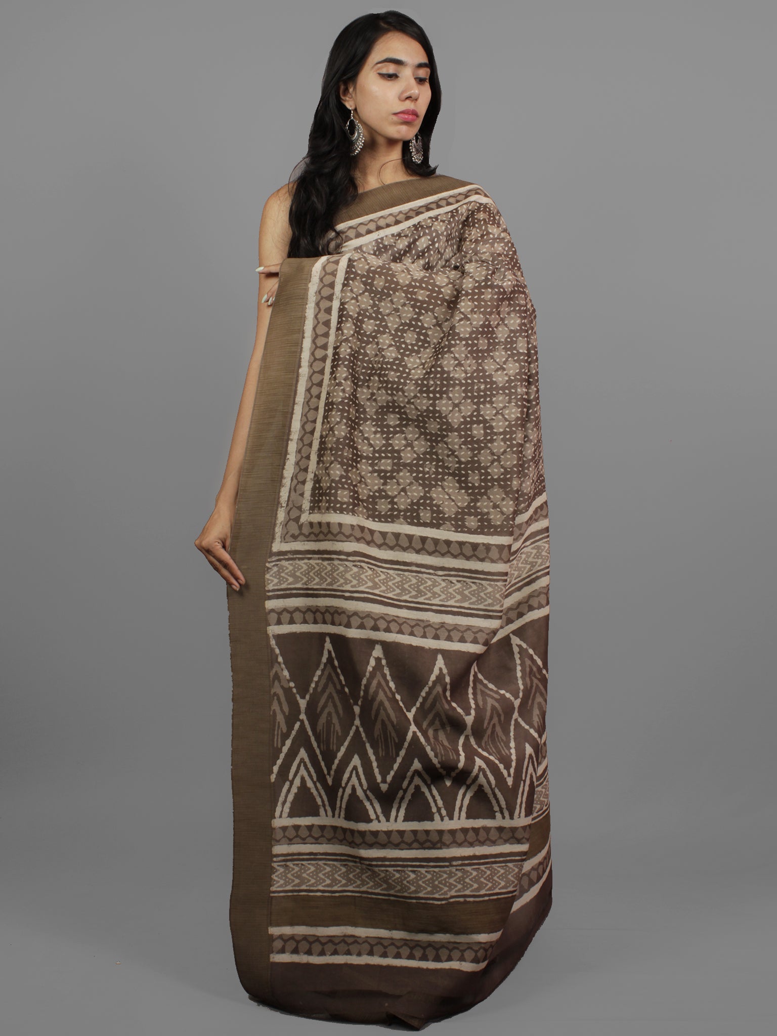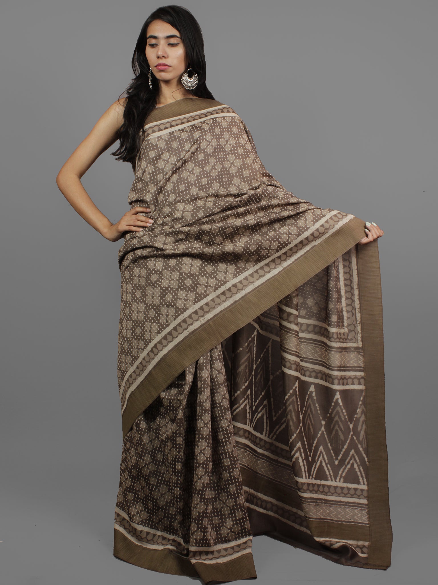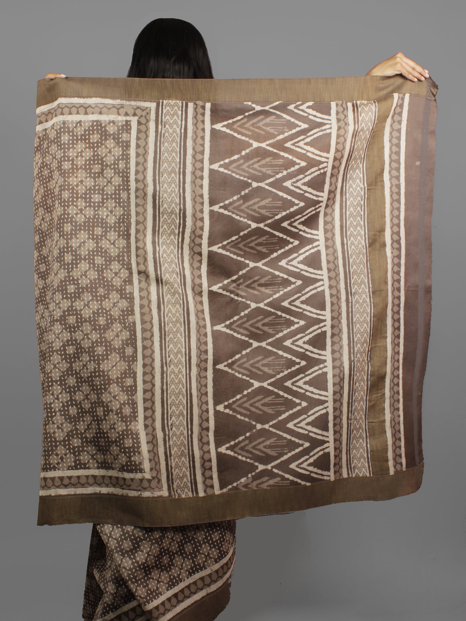 Kashish Ivory Chanderi Silk Hand Block Printed Saree With Ghicha Border - S031702445