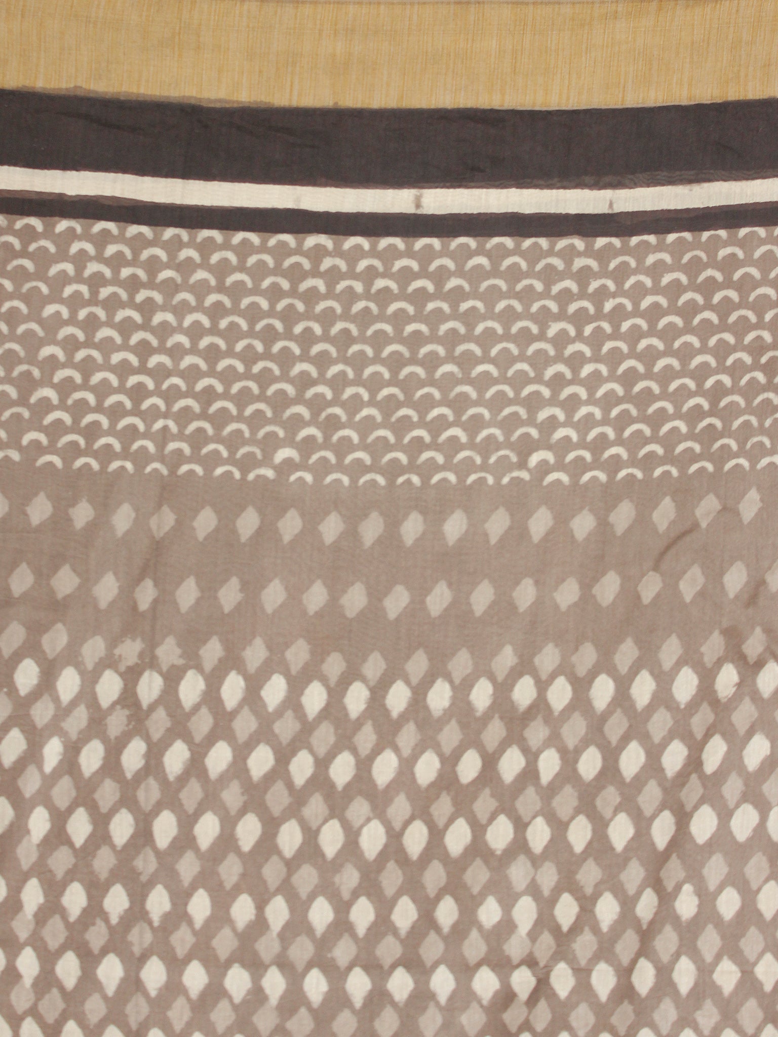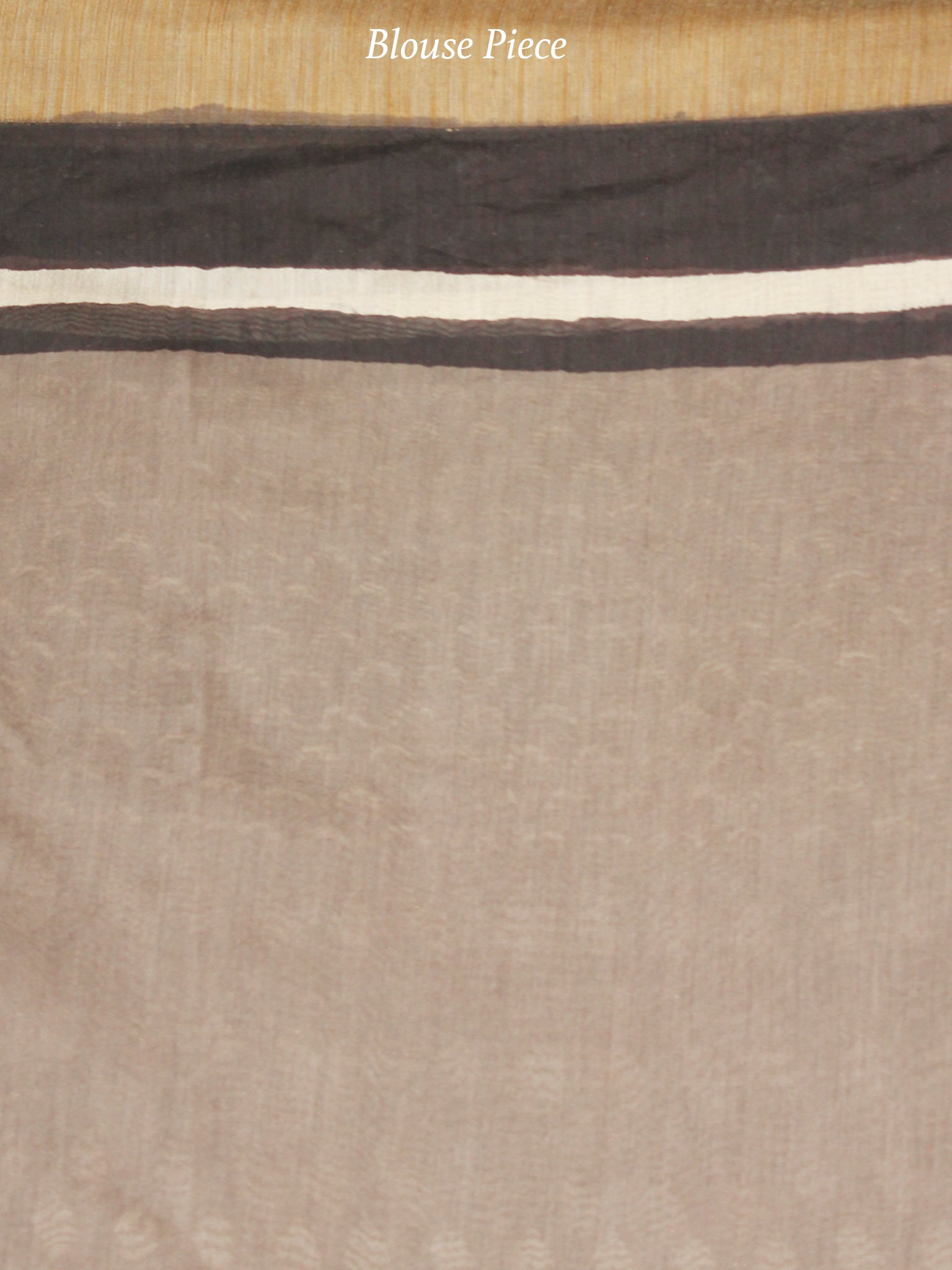 Light Brown Ivory Black Chanderi Silk Hand Block Printed Saree With Geecha Border - S031704005