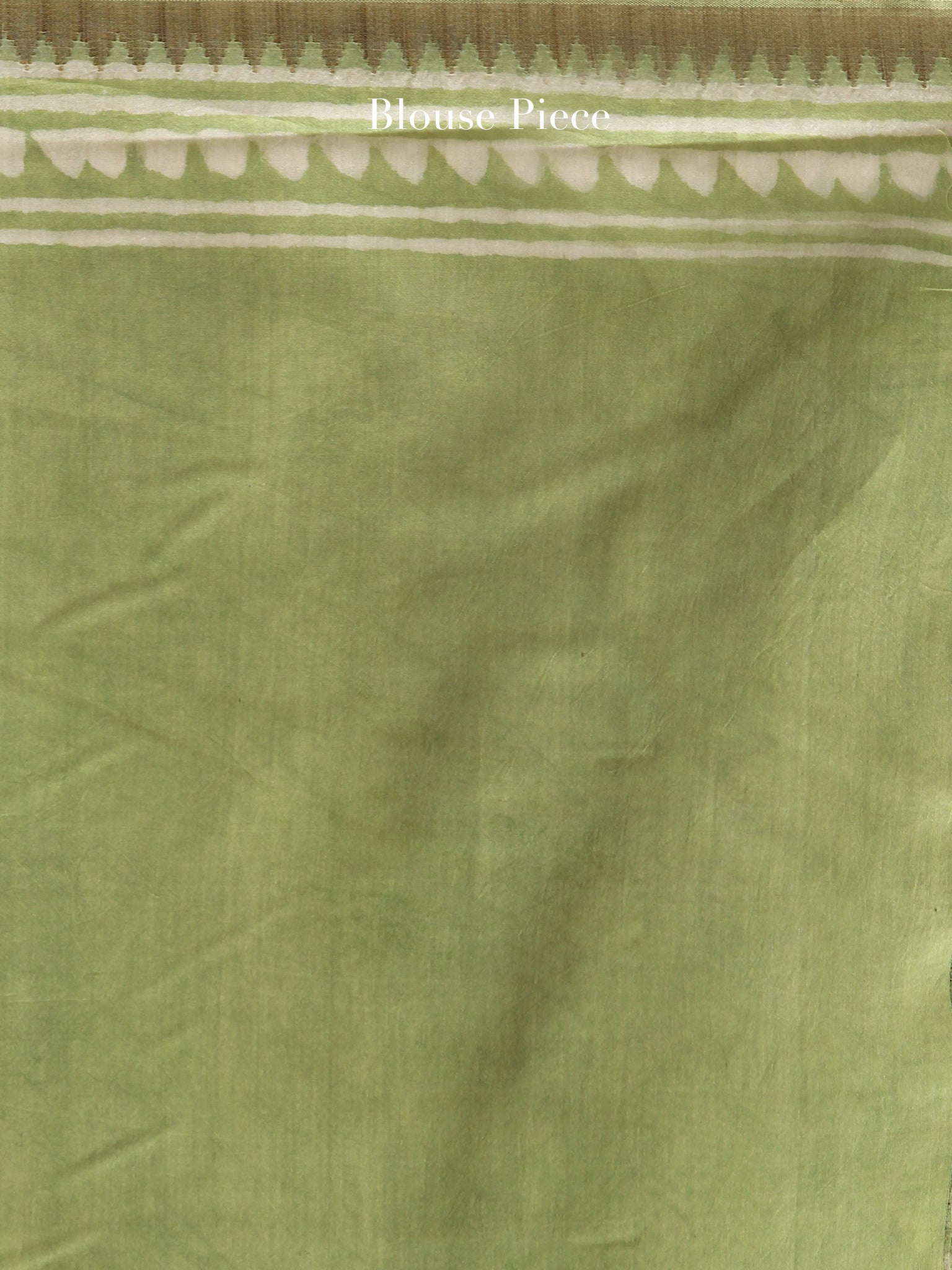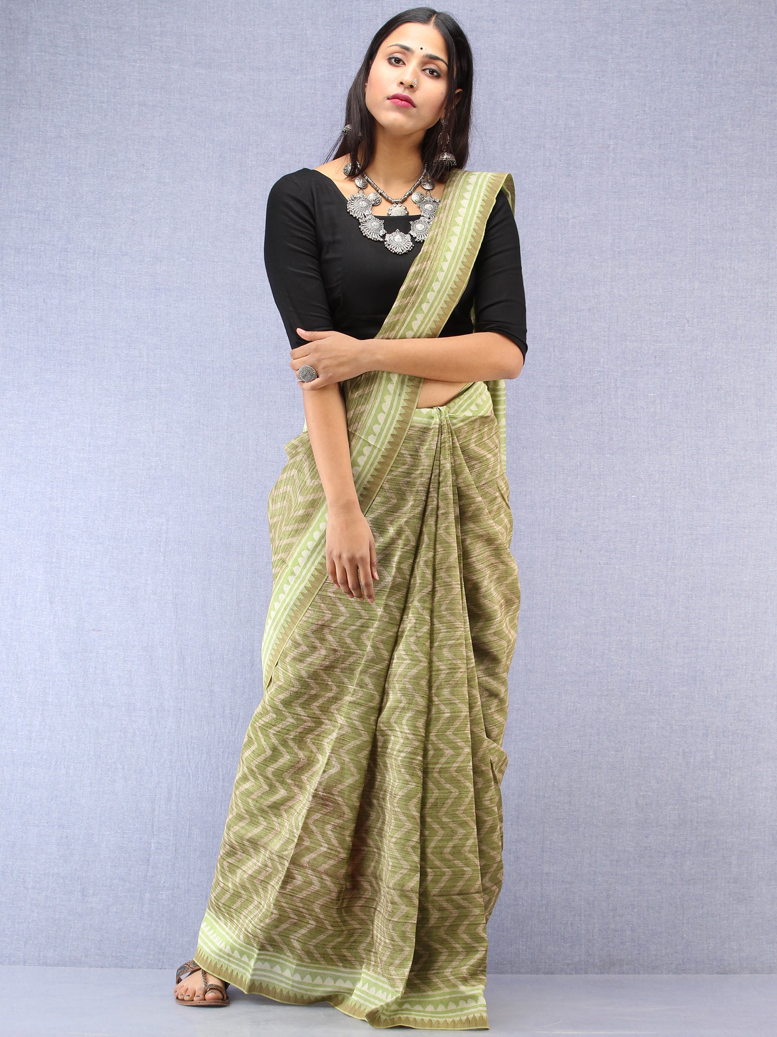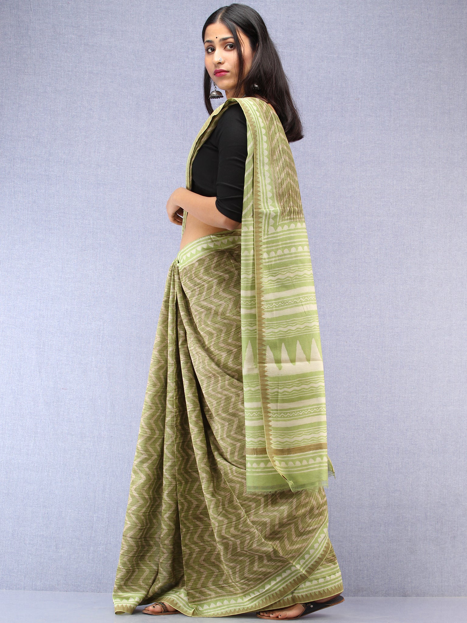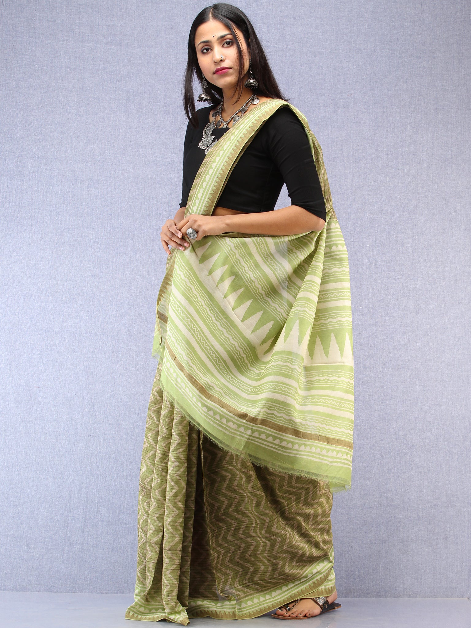 Light Green Ivory Chanderi Hand Block Printed Saree With Geecha Border - S031704499