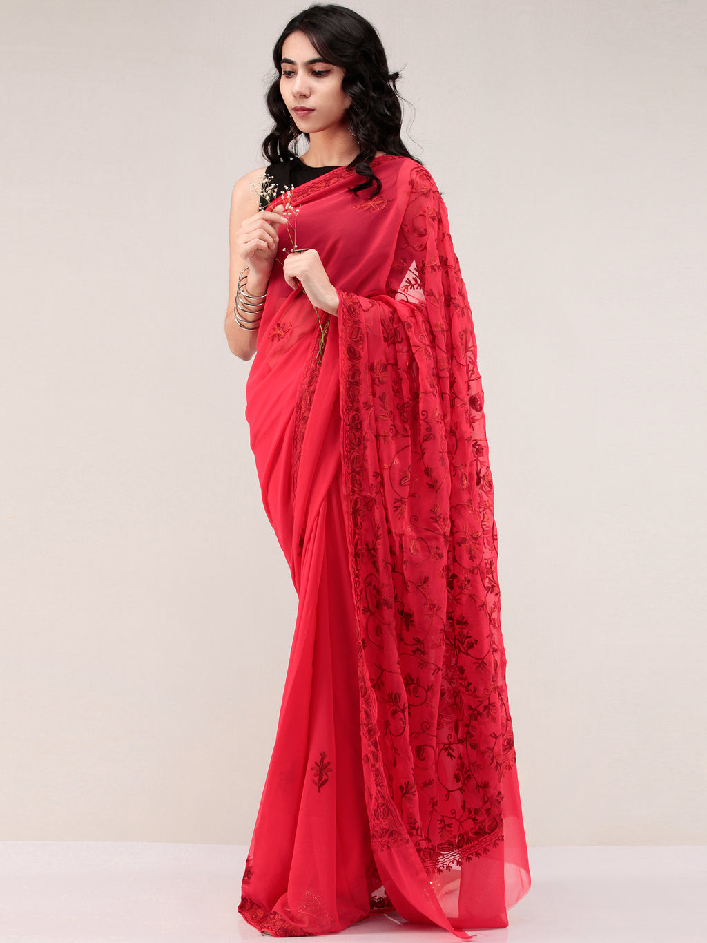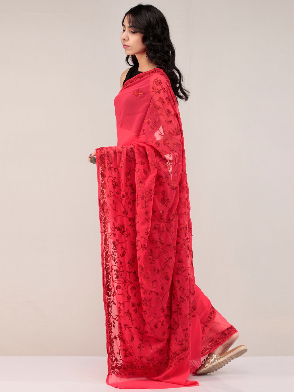 PRODUCT: Embroidered Saree in traditional Aari Work of Kashmir