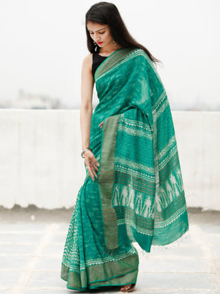 Green Ivory Chanderi Silk Hand Block Printed Saree With Geecha Border - S031703610