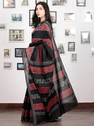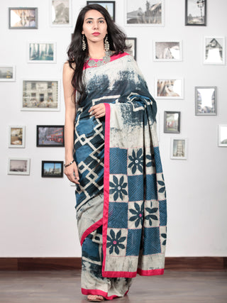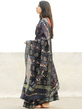 Indigo Black Red Chanderi Silk Hand Block Printed Saree With Geecha Border - S031702640