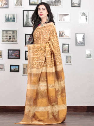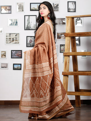 Peanut Brown Ivory Chanderi Silk Hand Block Printed Saree With Geecha Border - S031702933