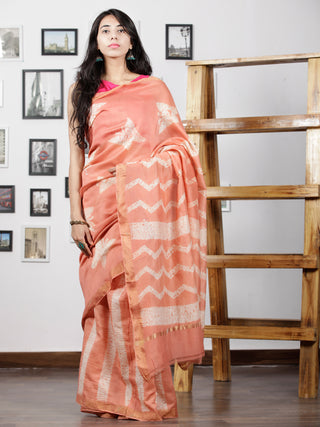 Peach White Chanderi Silk Hand Shibori Dyed Saree With Geecha Border - S031702940