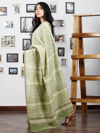 Pistachio Green Ivory Chanderi Silk Hand Block Printed Saree With Geecha Border - S031702934