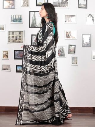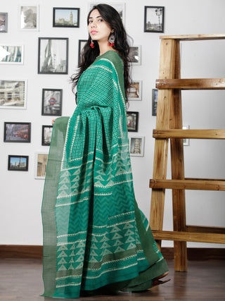 Green White Chanderi Silk Hand Block Printed Saree With Geecha Border - S031702937