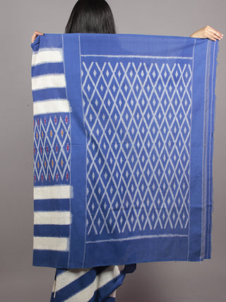 Navy Blue Ivory Ikat Handwoven Pochampally Mercerized Cotton Saree - S031701633