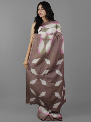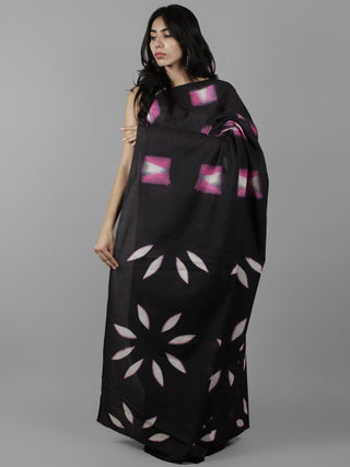 Black Pink White Hand Shibori Dyed Cotton Saree With Pink Blouse- S031702051