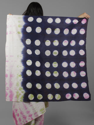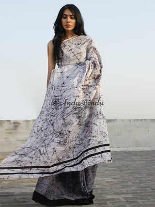 Indigo Ivory Natural Color Dyed Hand Clamped Cotton Shibori Saree - S031702121