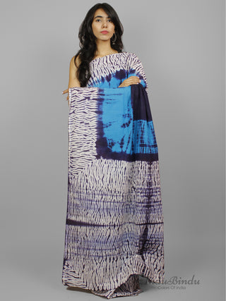 Indigo White Hand Block Printed Cotton Saree In Natural Colors - S031702373