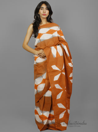 Kashish Dark Rust Ivory Hand Block Printed Cotton Saree In Natural Colors - S031702311