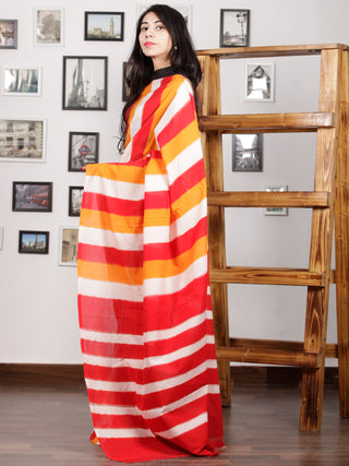 Red Orange Ivory Ikat Handwoven Pochampally Mercerized Cotton Saree - S031701588
