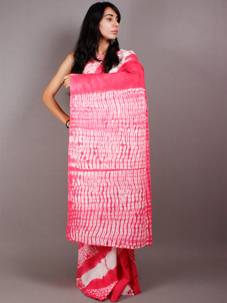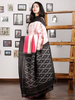 White Pink Black Ikat Handwoven Pochampally Mercerized Cotton Saree - S031701261