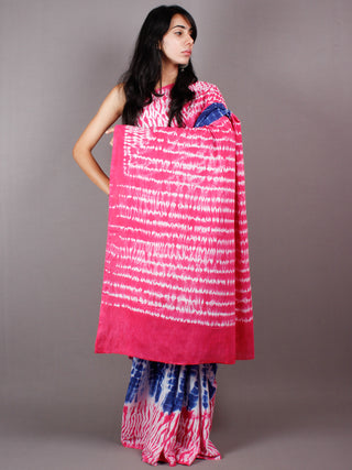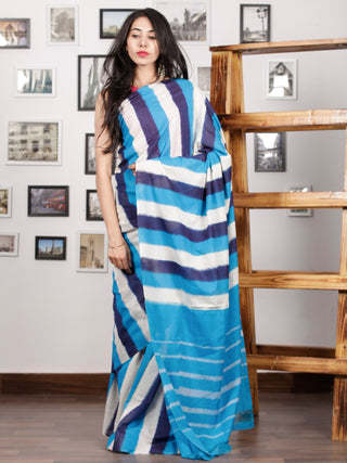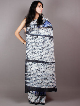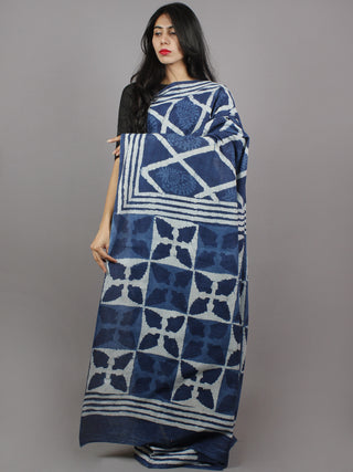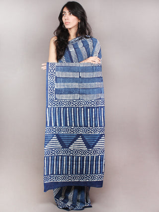 Indigo White Hand Block Printed Cotton Saree in Natural Colors - S03170812