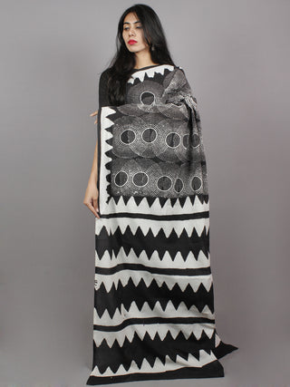 Black White Blue Ikat Handwoven Pochampally Mercerized Cotton Saree - S031701426