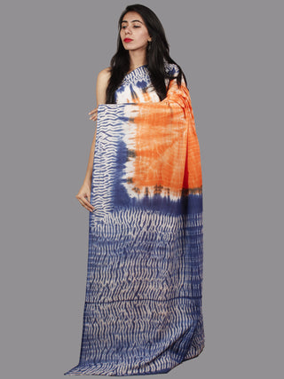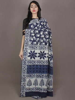 Indigo Ivory Cotton Hand Block Printed Saree in Natural Colors - S031701191