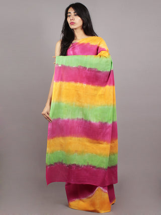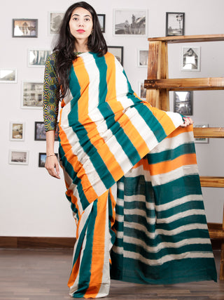 Green Orange White Ikat Handwoven Pochampally Mercerized Cotton Saree - S031701586