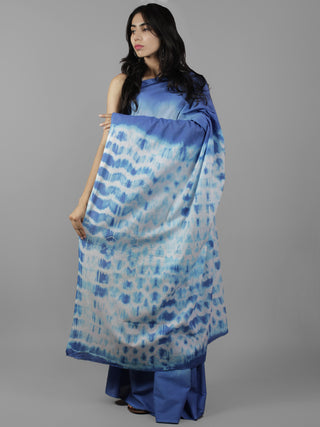 Indigo Blue White Ikat Handwoven Pochampally Mercerized Cotton Saree - S031701422