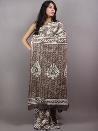 Brown Beige Ivory Hand Block Printed in Natural Colors Cotton Mul Saree - S03170631