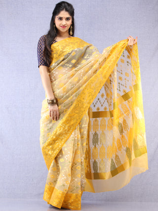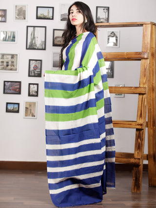 Indigo Green Ivory Ikat Handwoven Pochampally Mercerized Cotton Saree - S031701423
