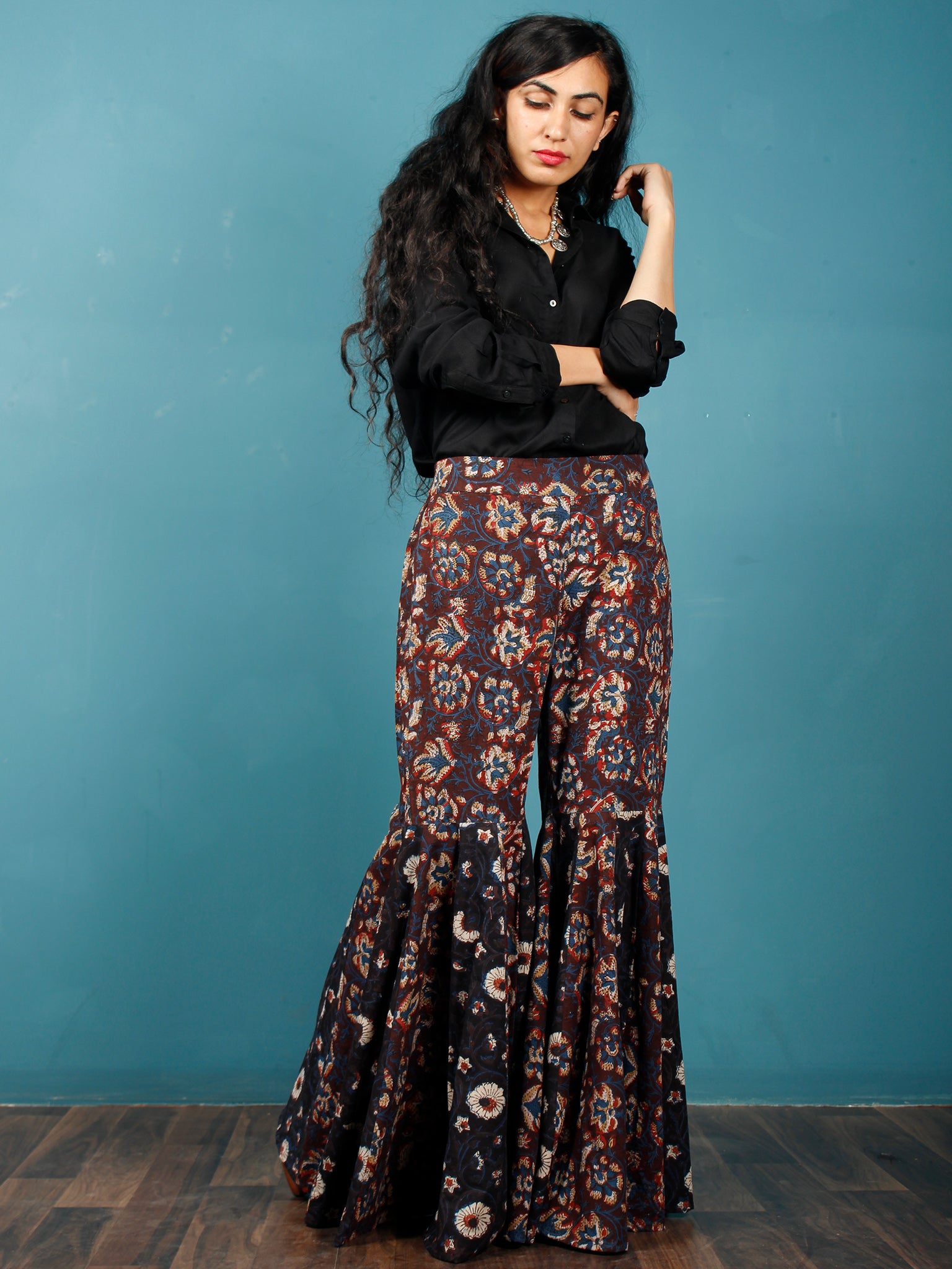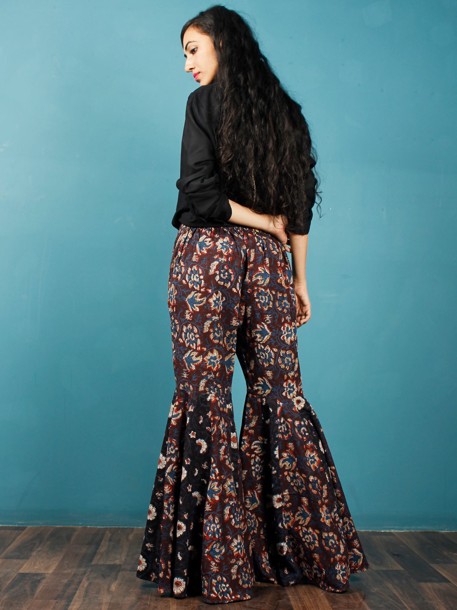 Brown Indigo Rust Mustard Hand Block Printed Semi Elasticated Waist Cotton Sharara - Sh11F1394