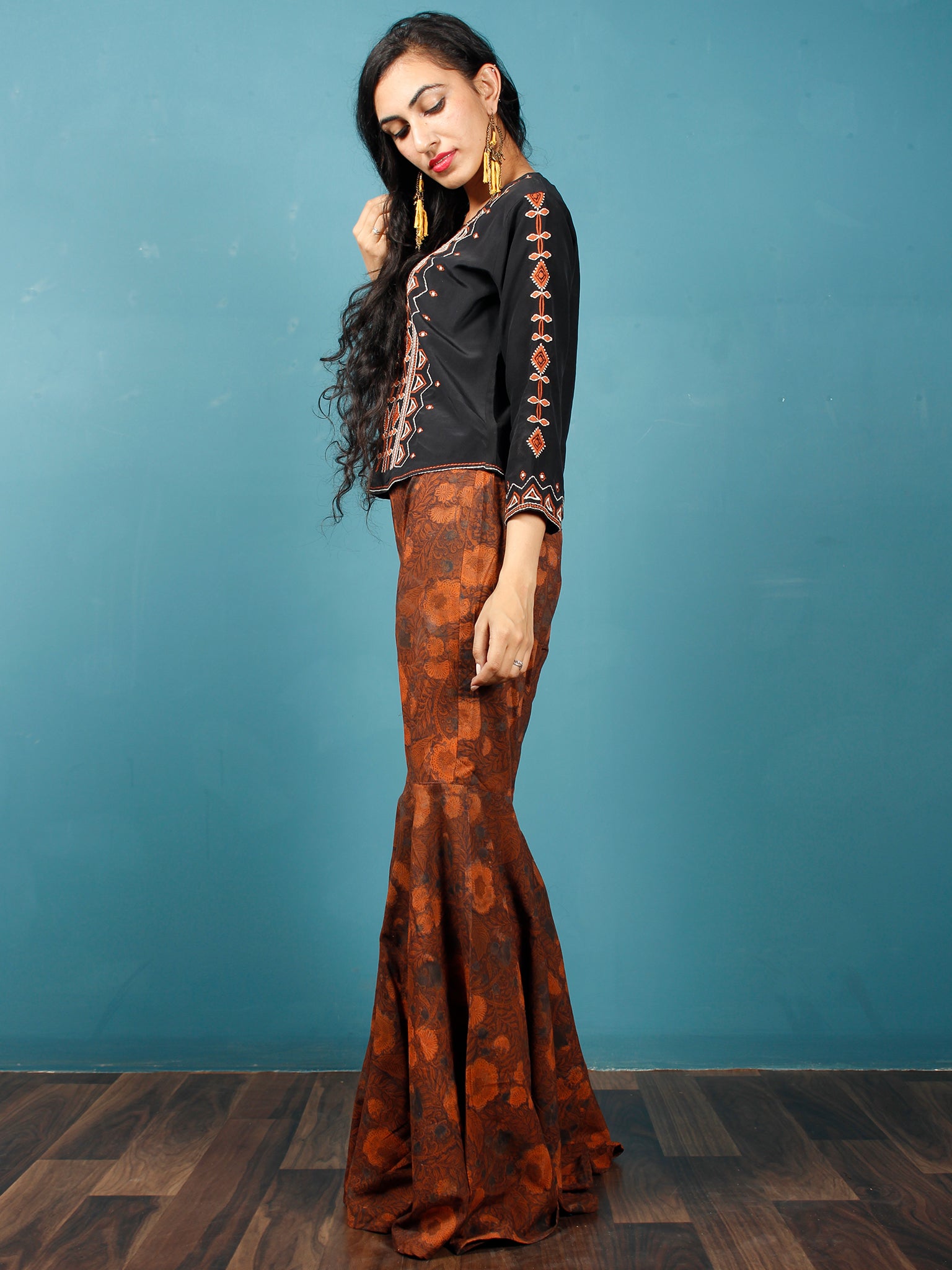Brown Rust Indigo Hand Block Printed Semi Elasticated Waist Cotton Sharara - Sh06F603