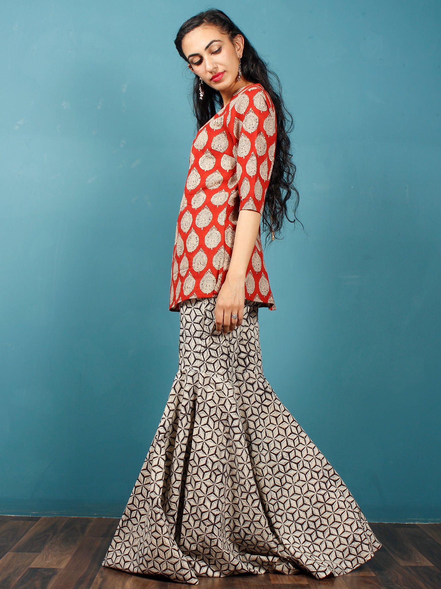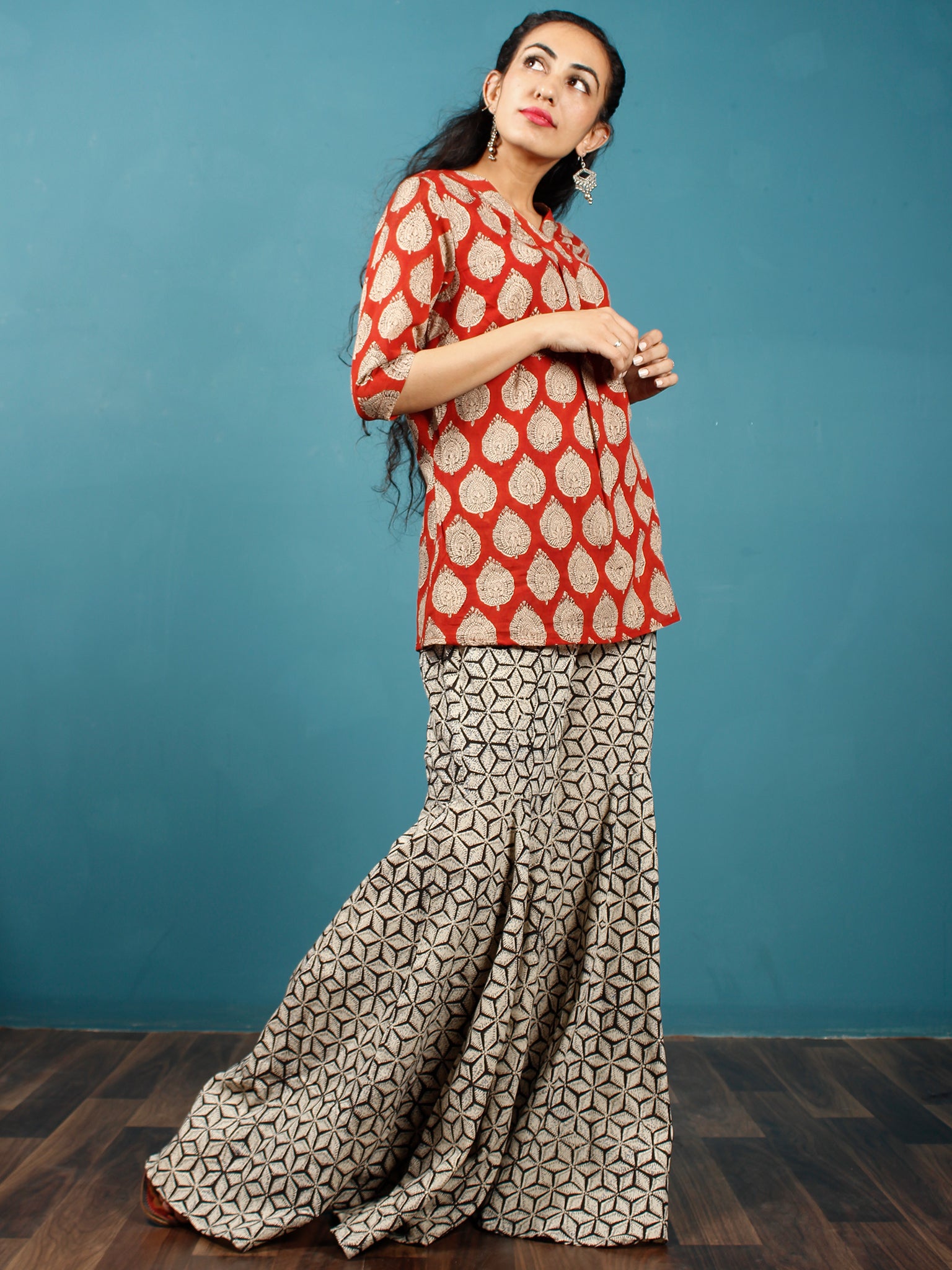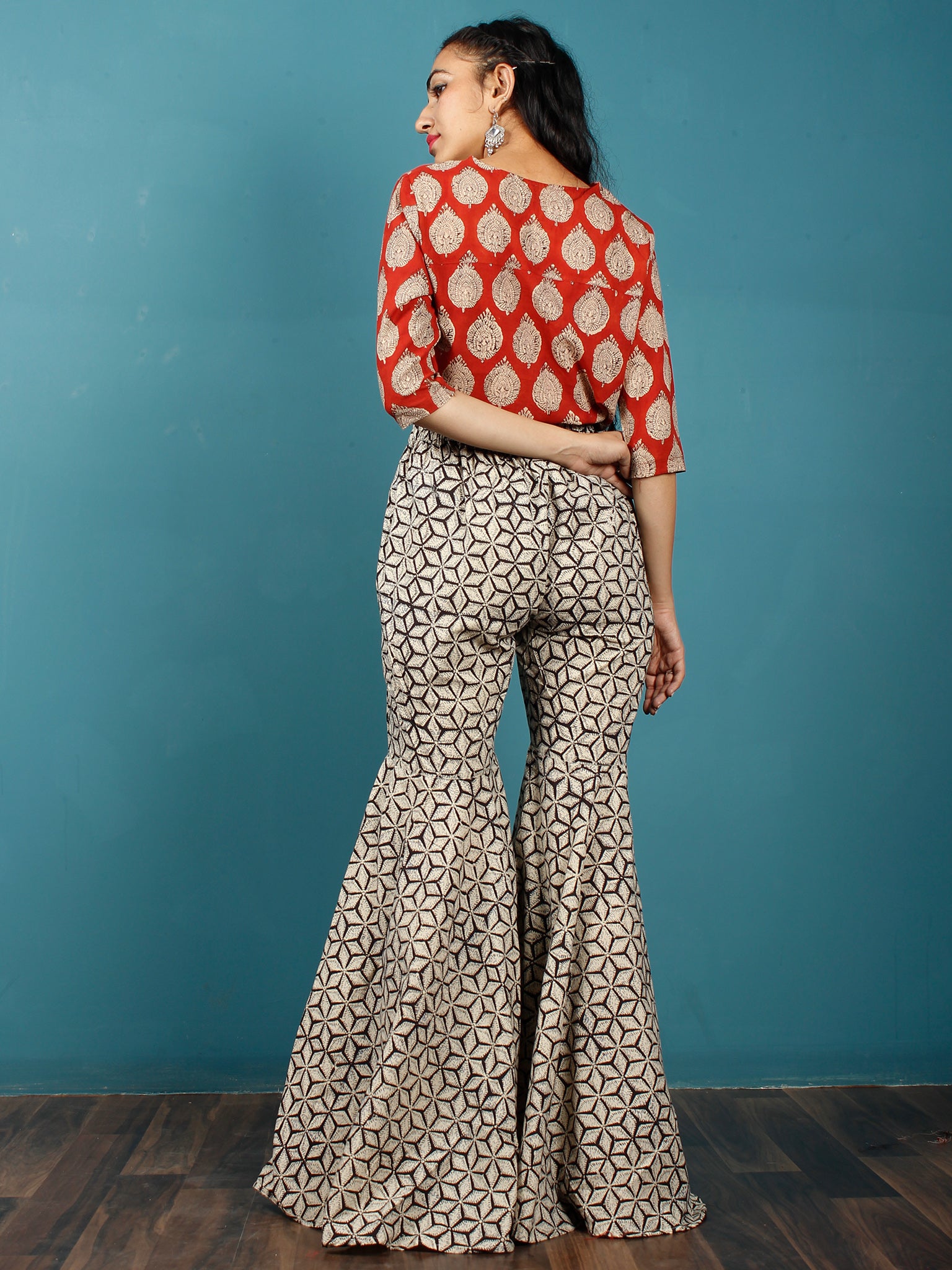 Ivory Black Hand Block Printed Semi Elasticated Waist Cotton Sharara - Sh07F1345