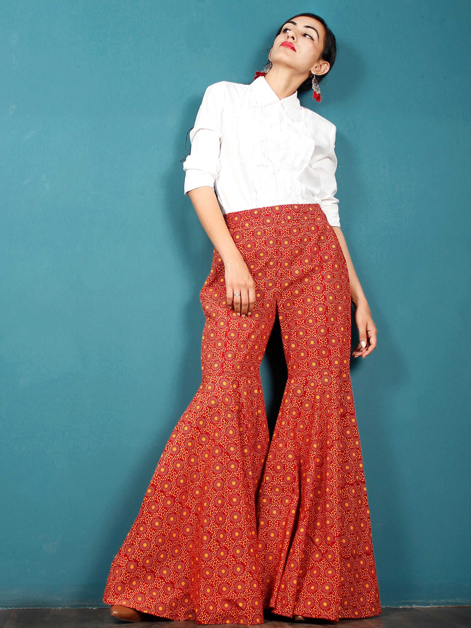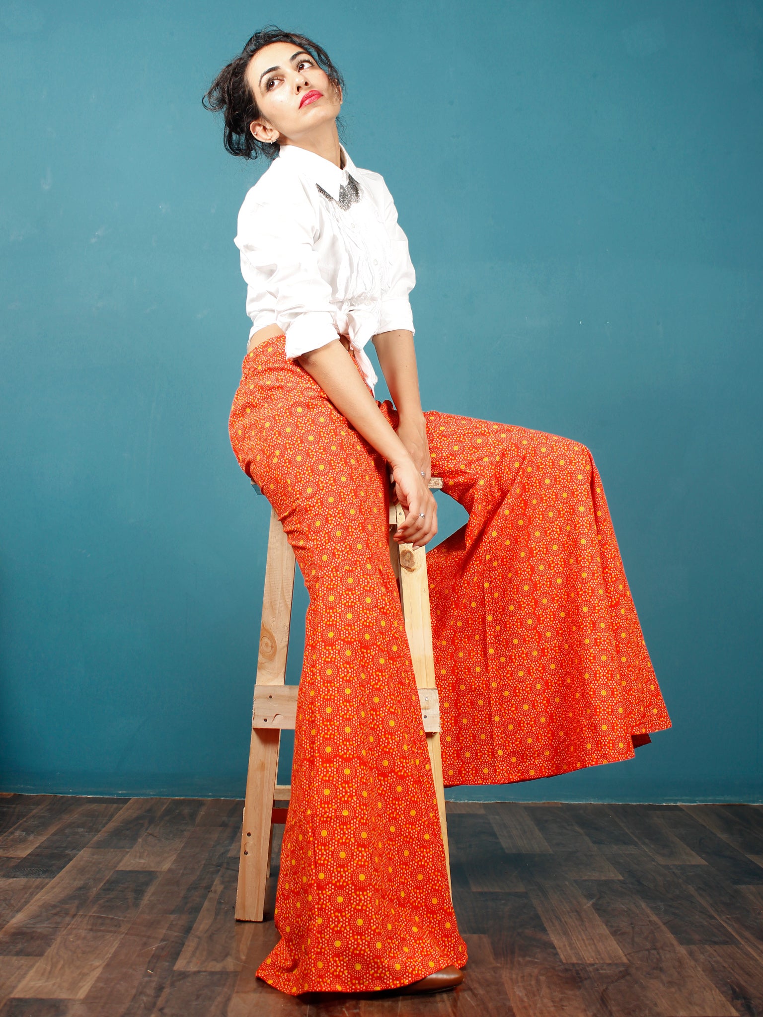 Orange Yellow Hand Block Printed Semi Elasticated Waist Cotton Sharara - Sh01F708