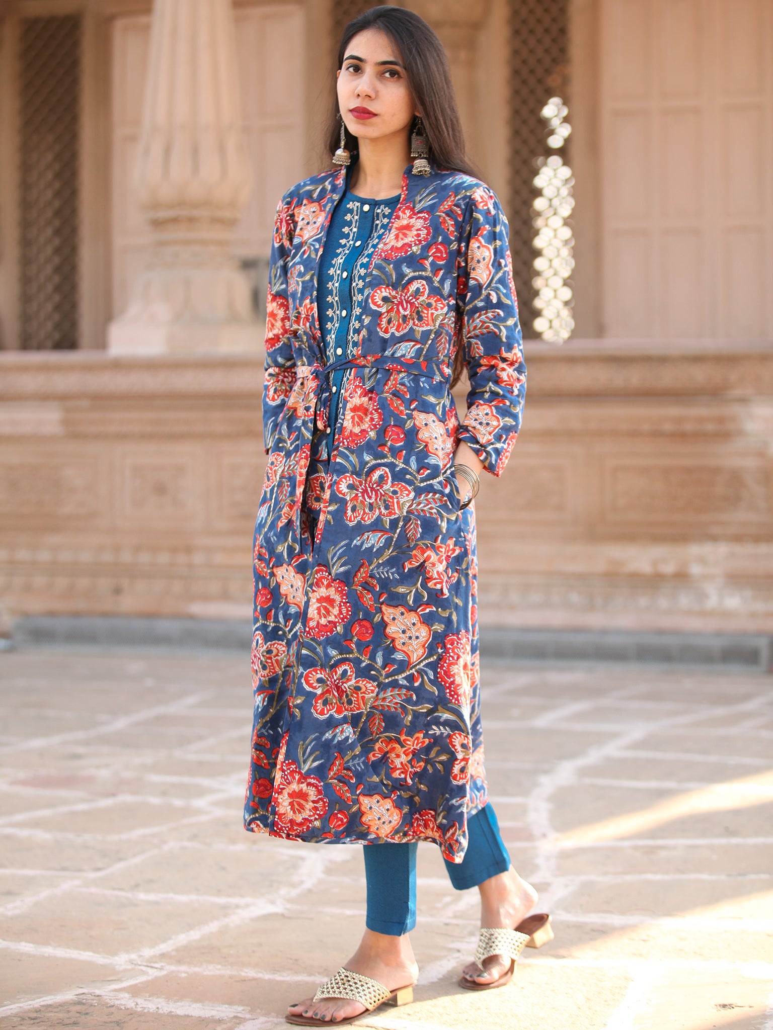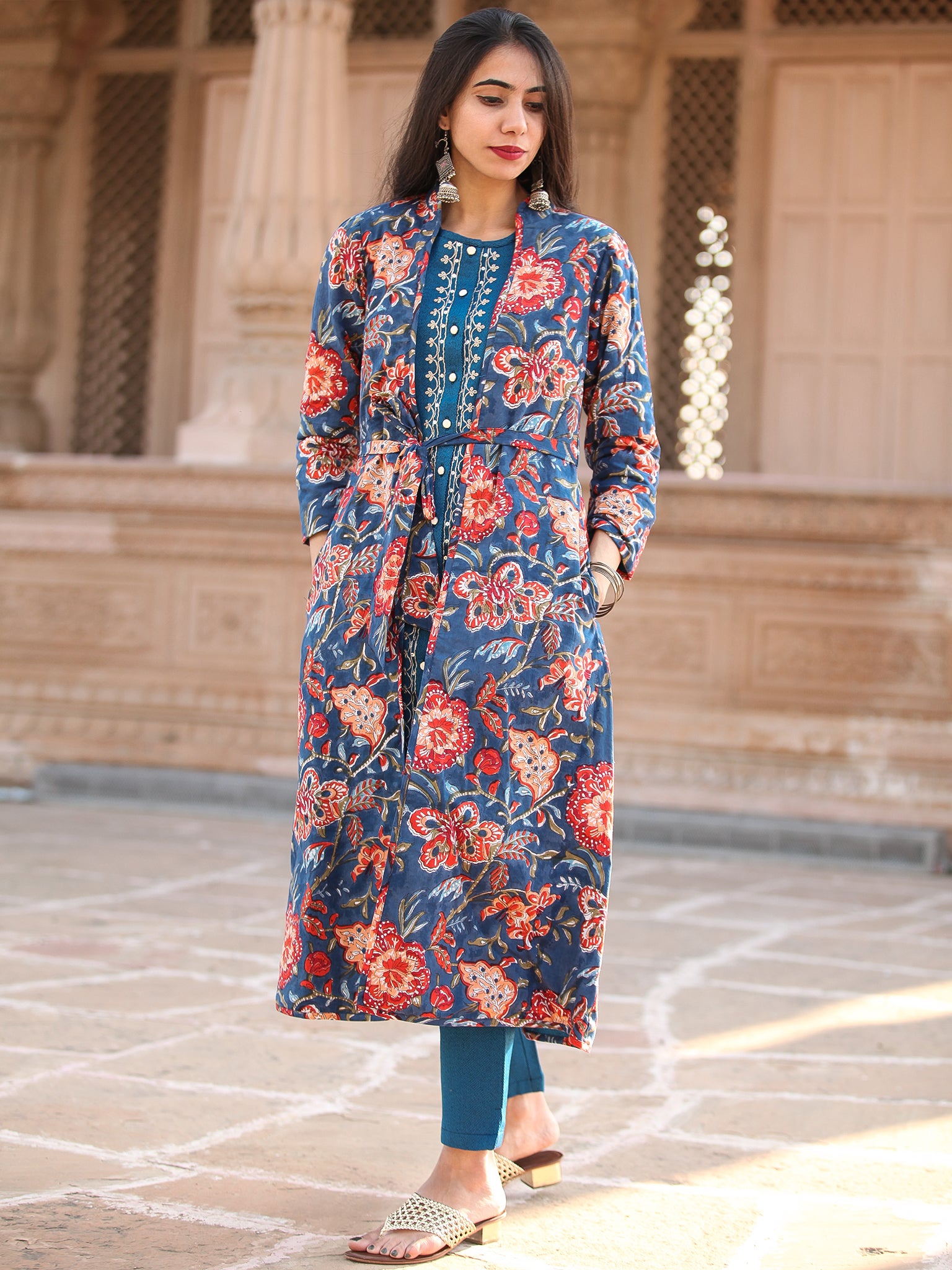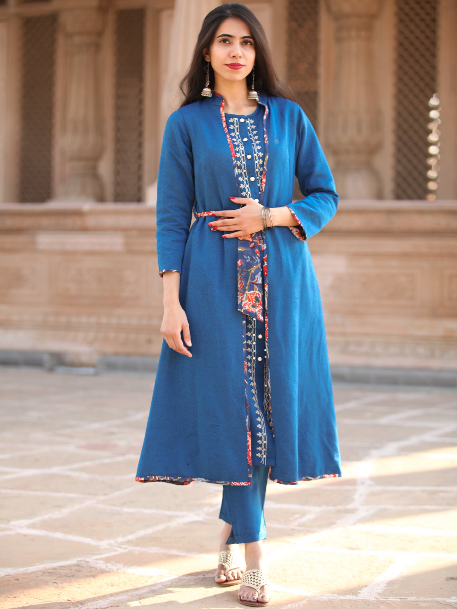 PRODUCT: Handcrafted Reversible Woolen Jacket with intrinsic and alluring work of block print on one side and plain woolen handloom fabric on other side.