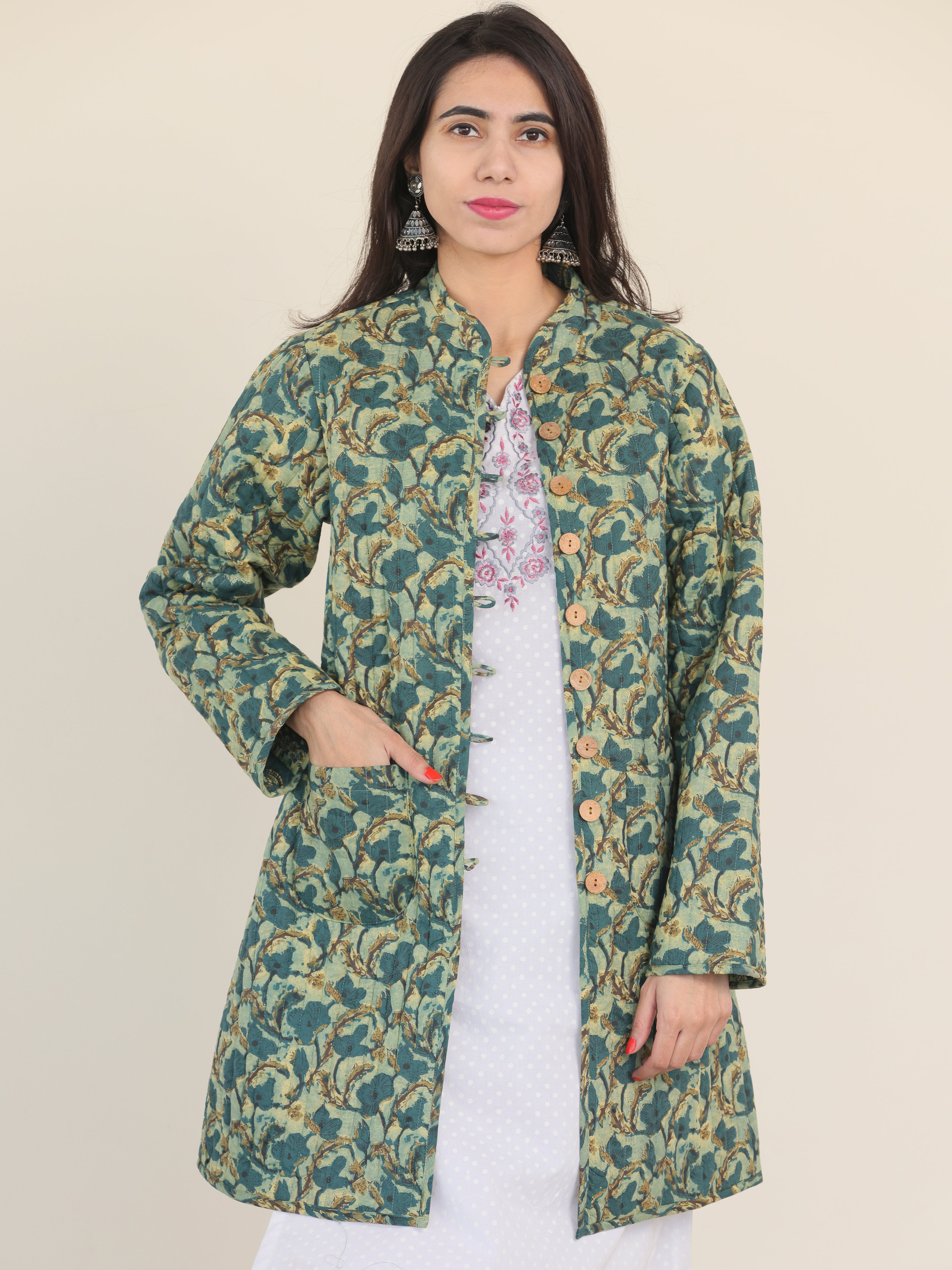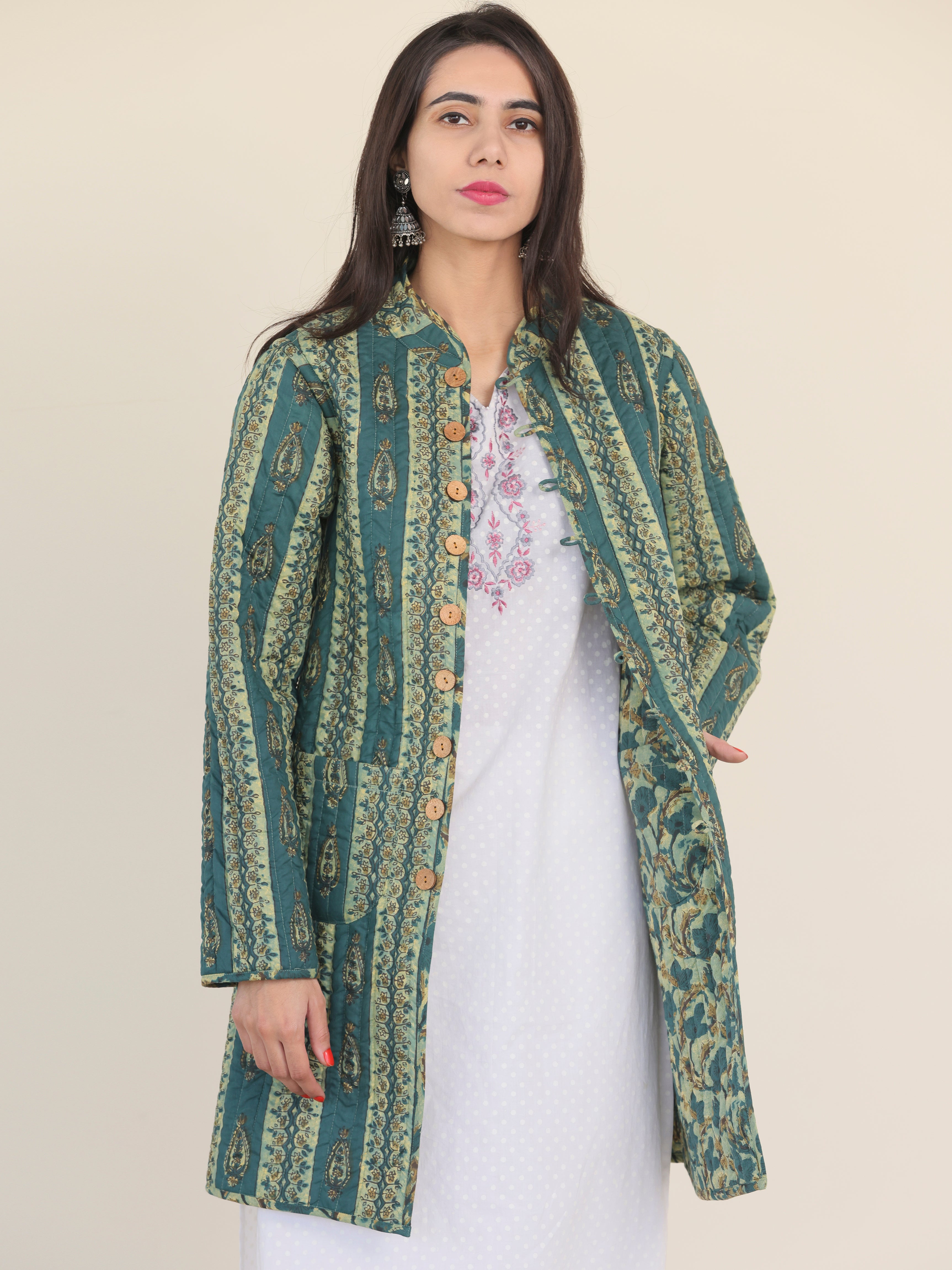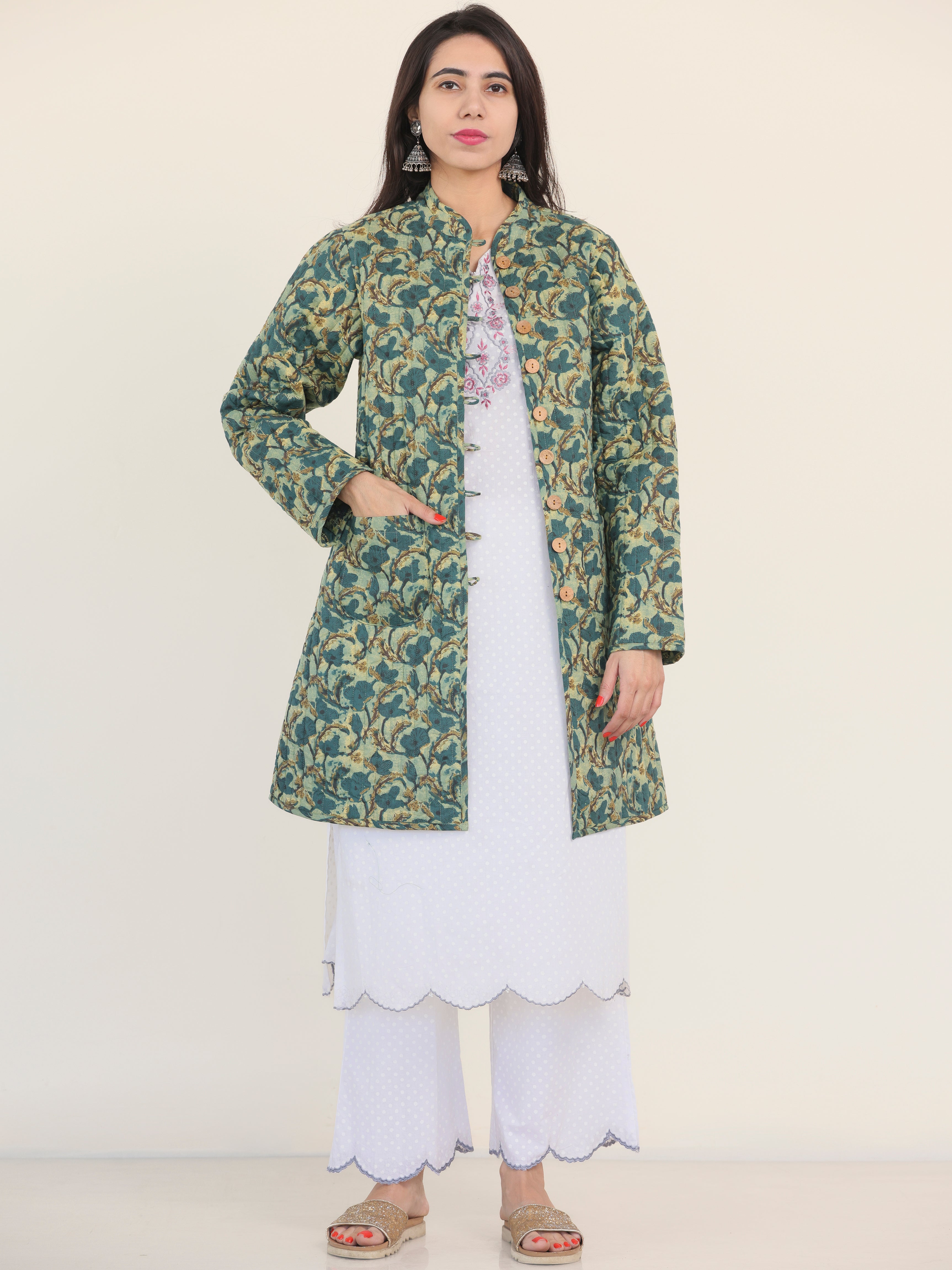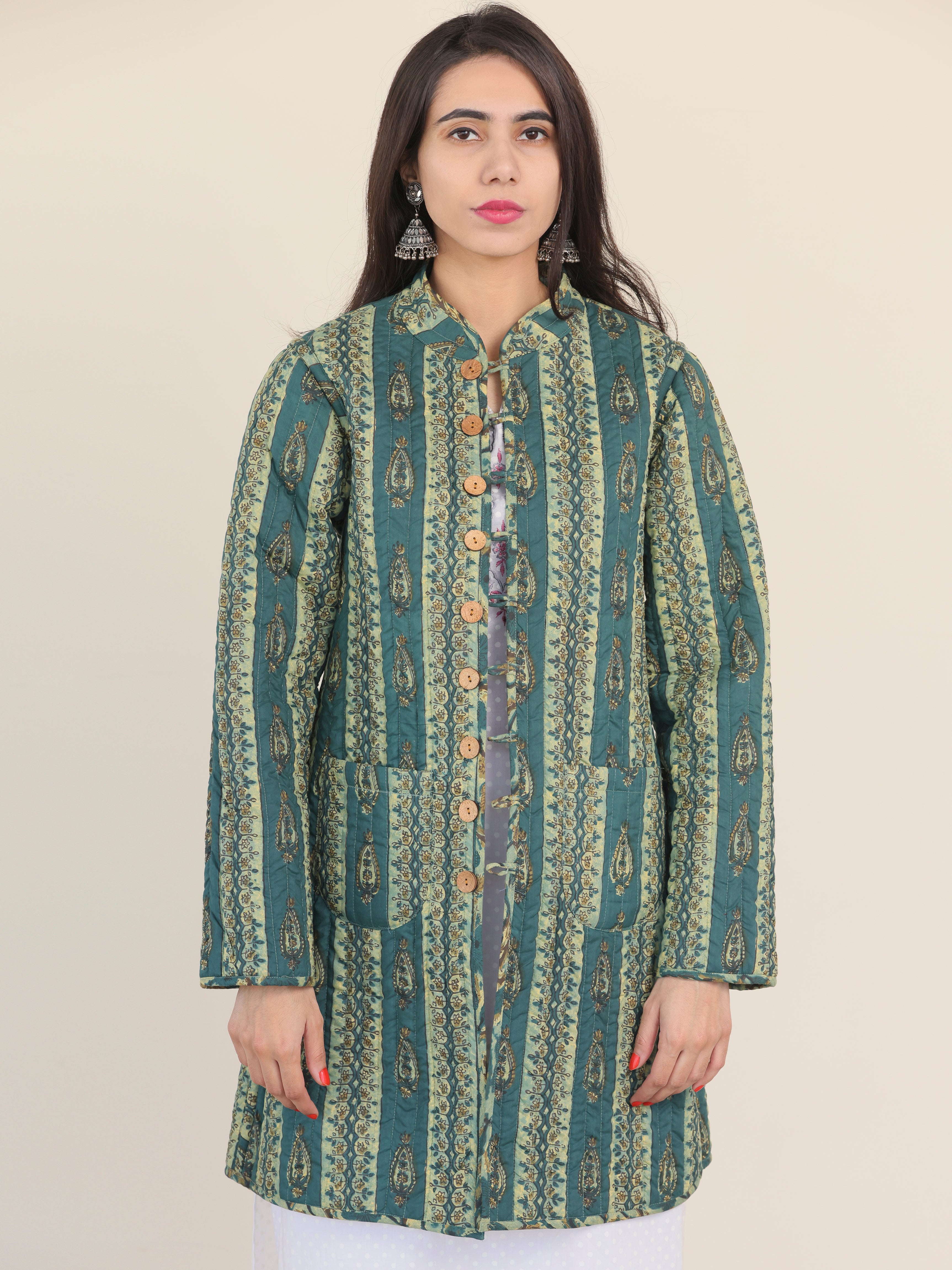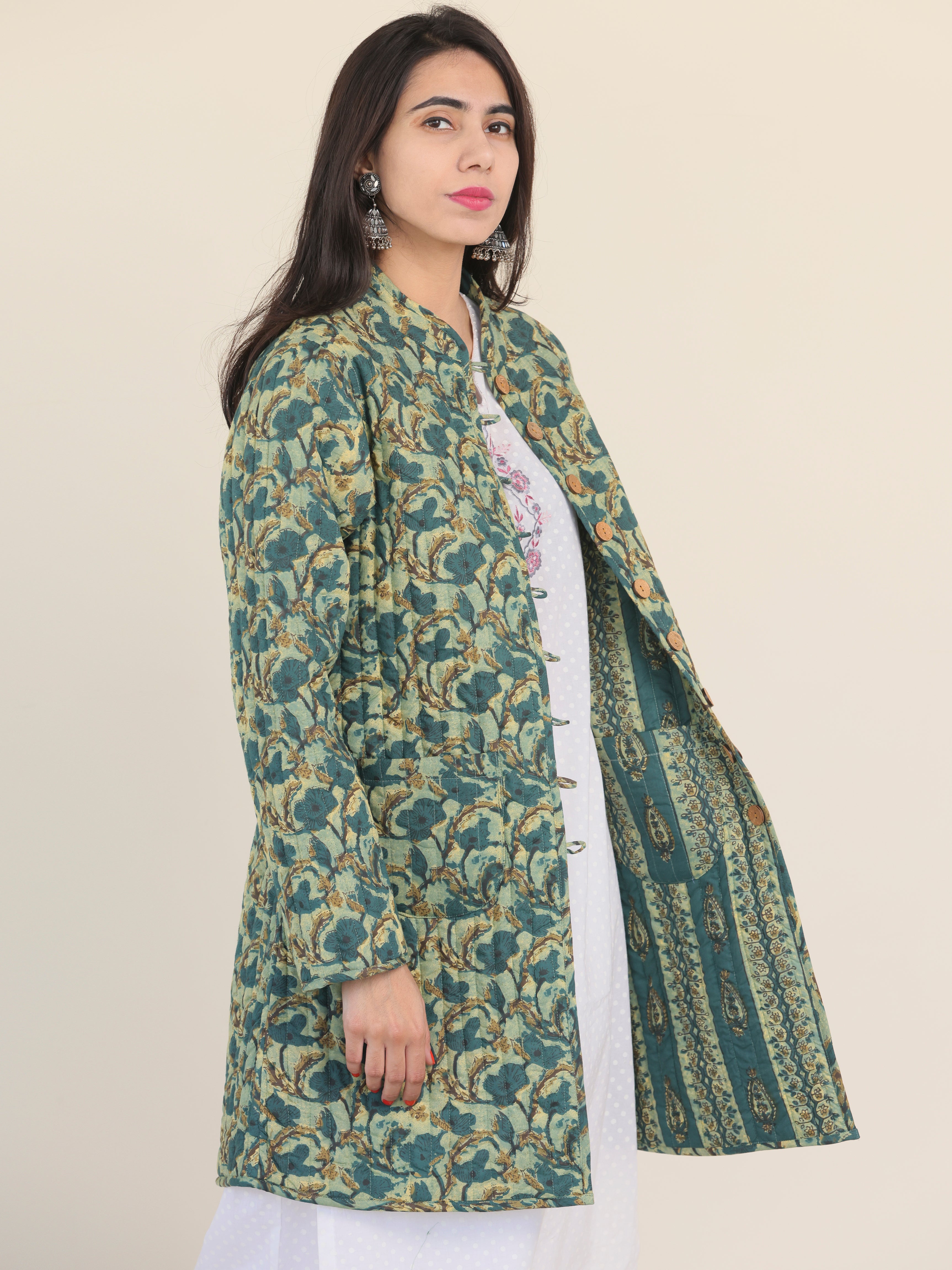 PRODUCT: Handcrafted Reversible Quilted Jacket with intrinsic and alluring work of block print on both the sides.
