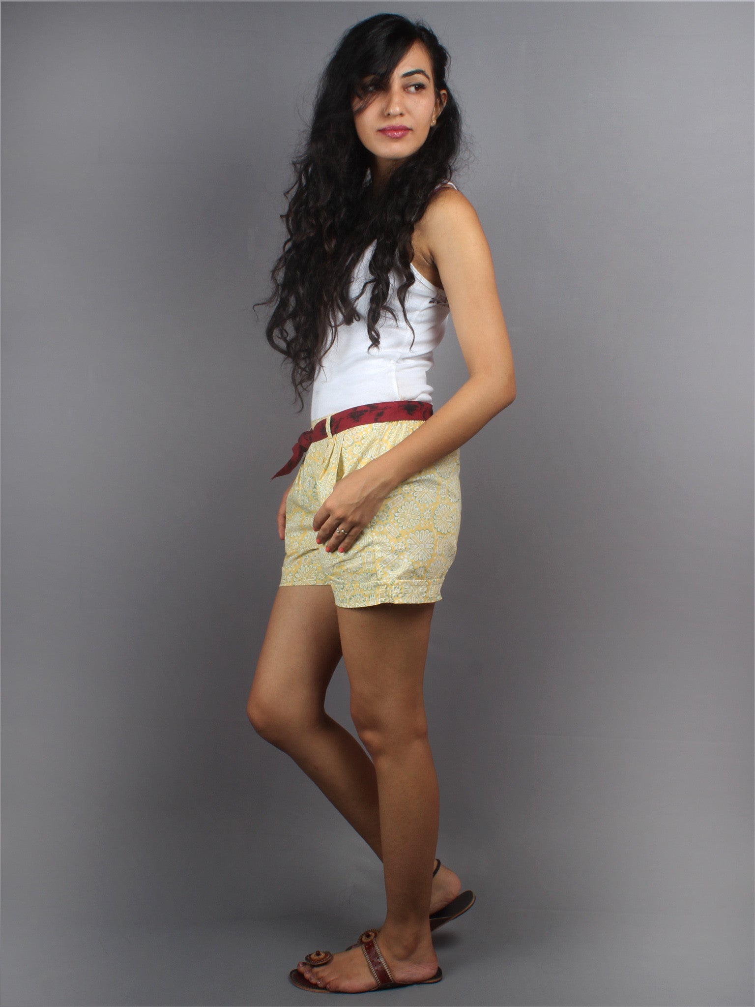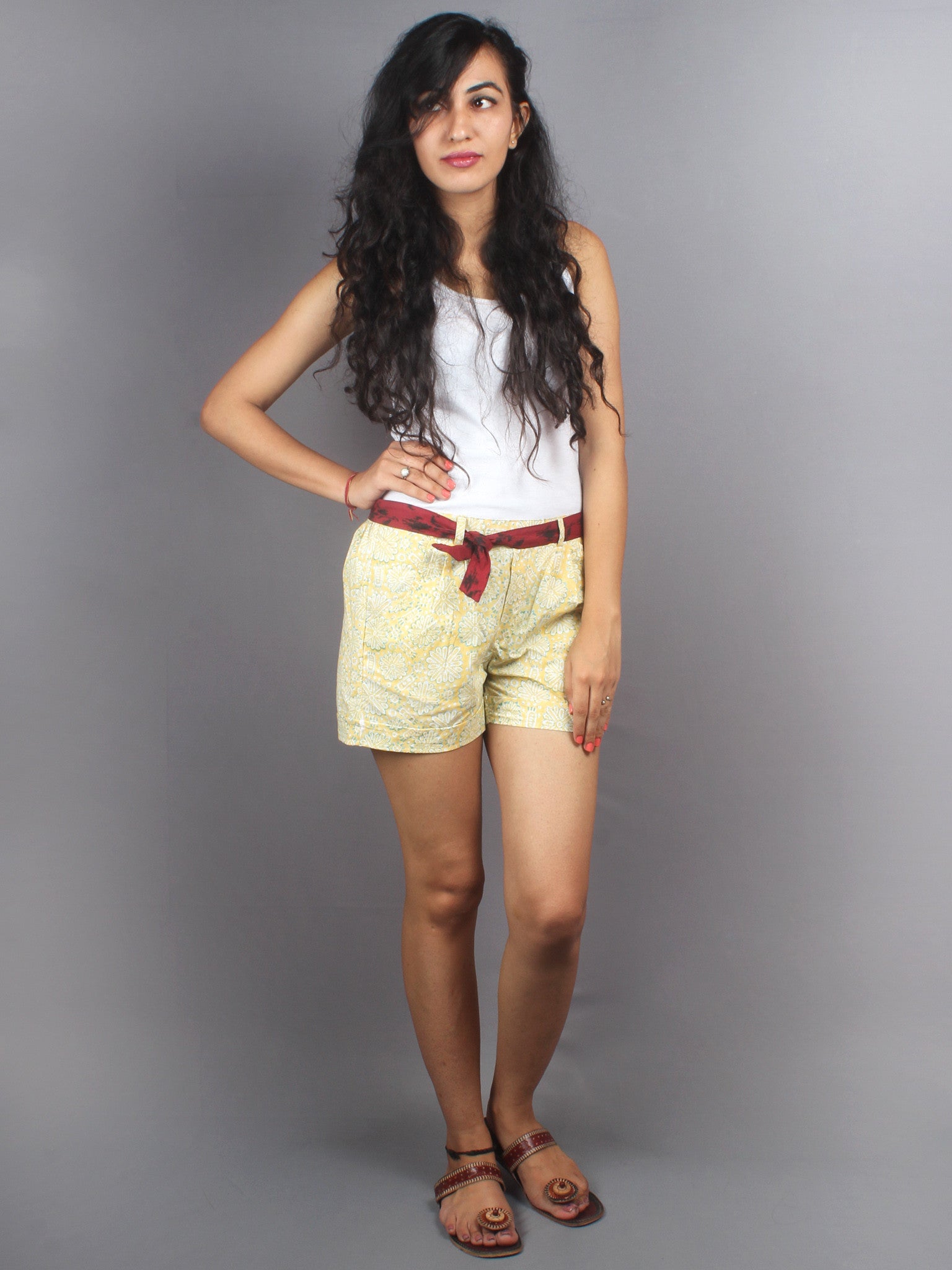 Yellow Hand Block Printed Shorts With Belt -S5296003