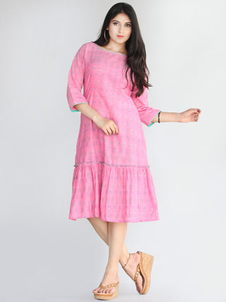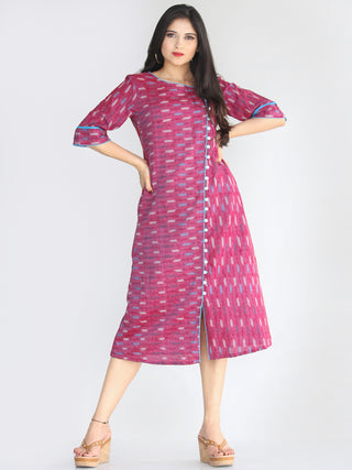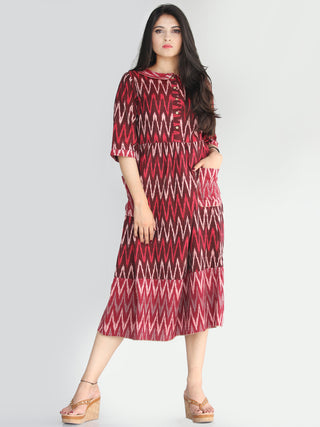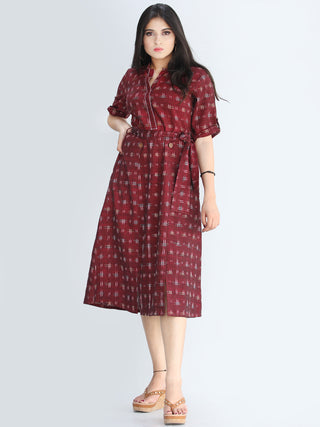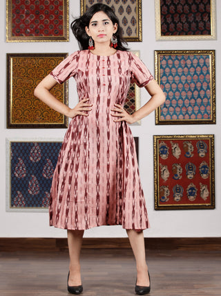 Pink Maroon Handwoven Ikat Dress With Princess Cut & Knife Pleates- D278F1450