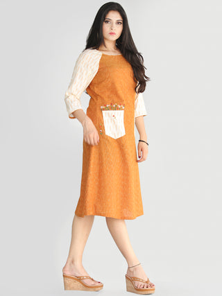 Mustard Ivory Long Handwoven Double Ikat Dress With Side Pockets - D28F1569