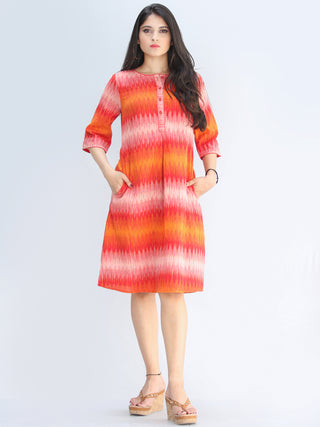 Mahrosh - Handwoven Double Ikat Pleated Dress With Side Pockets - D65F2282