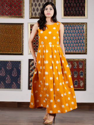 Mustard Ivory Long Sleeveless Ikat Knife Pleated Dress With Side Pockets - D32F1458