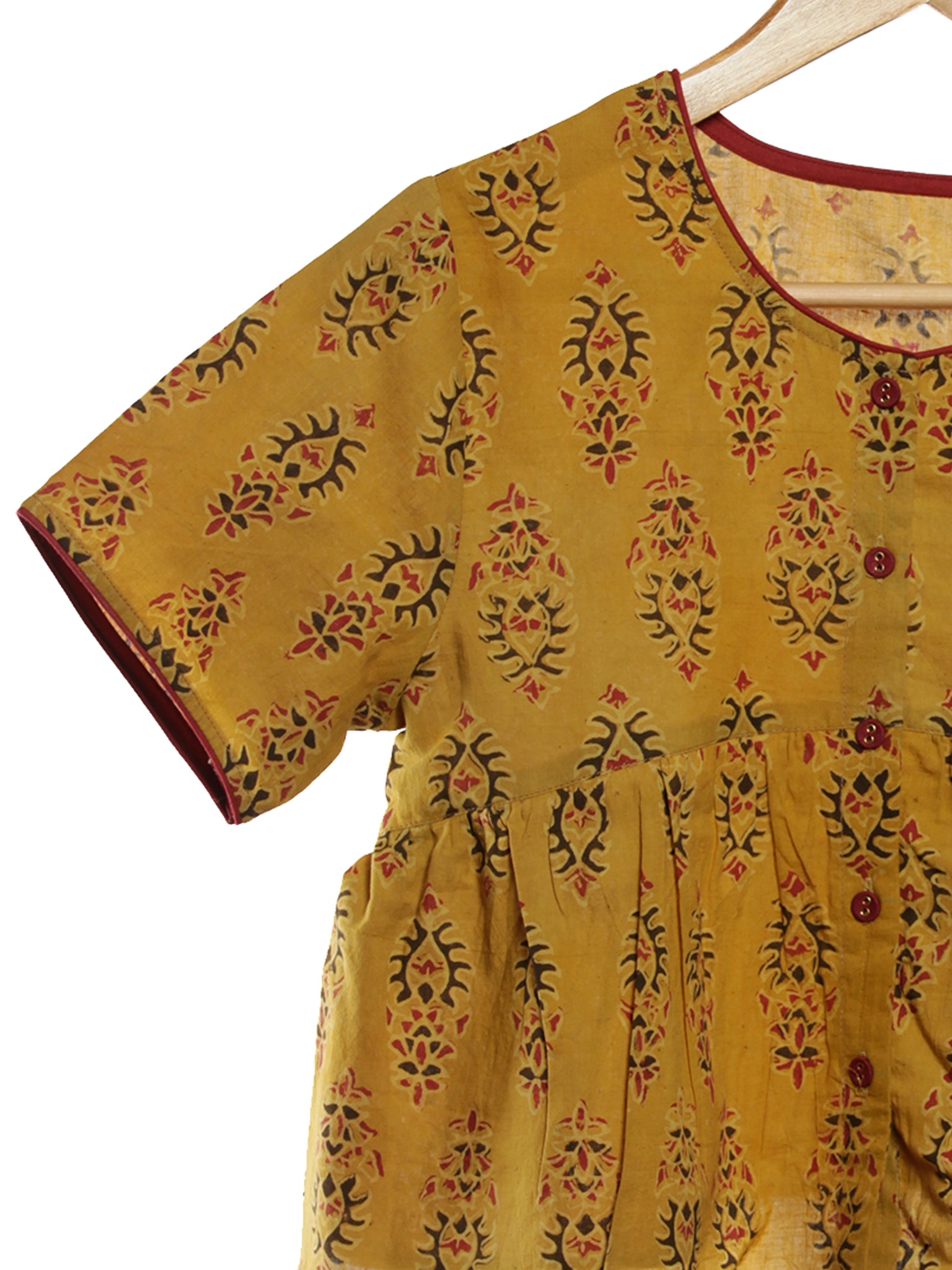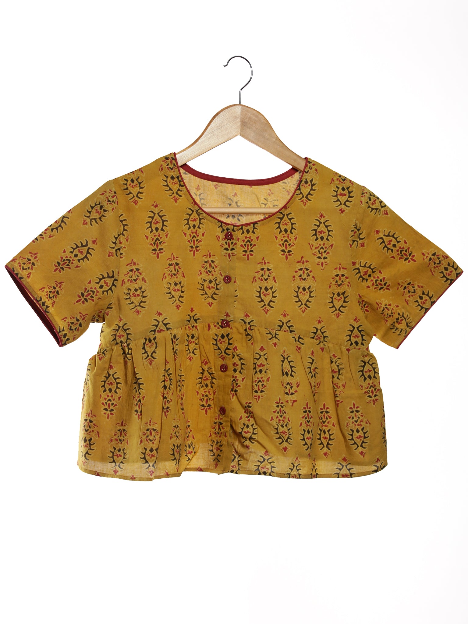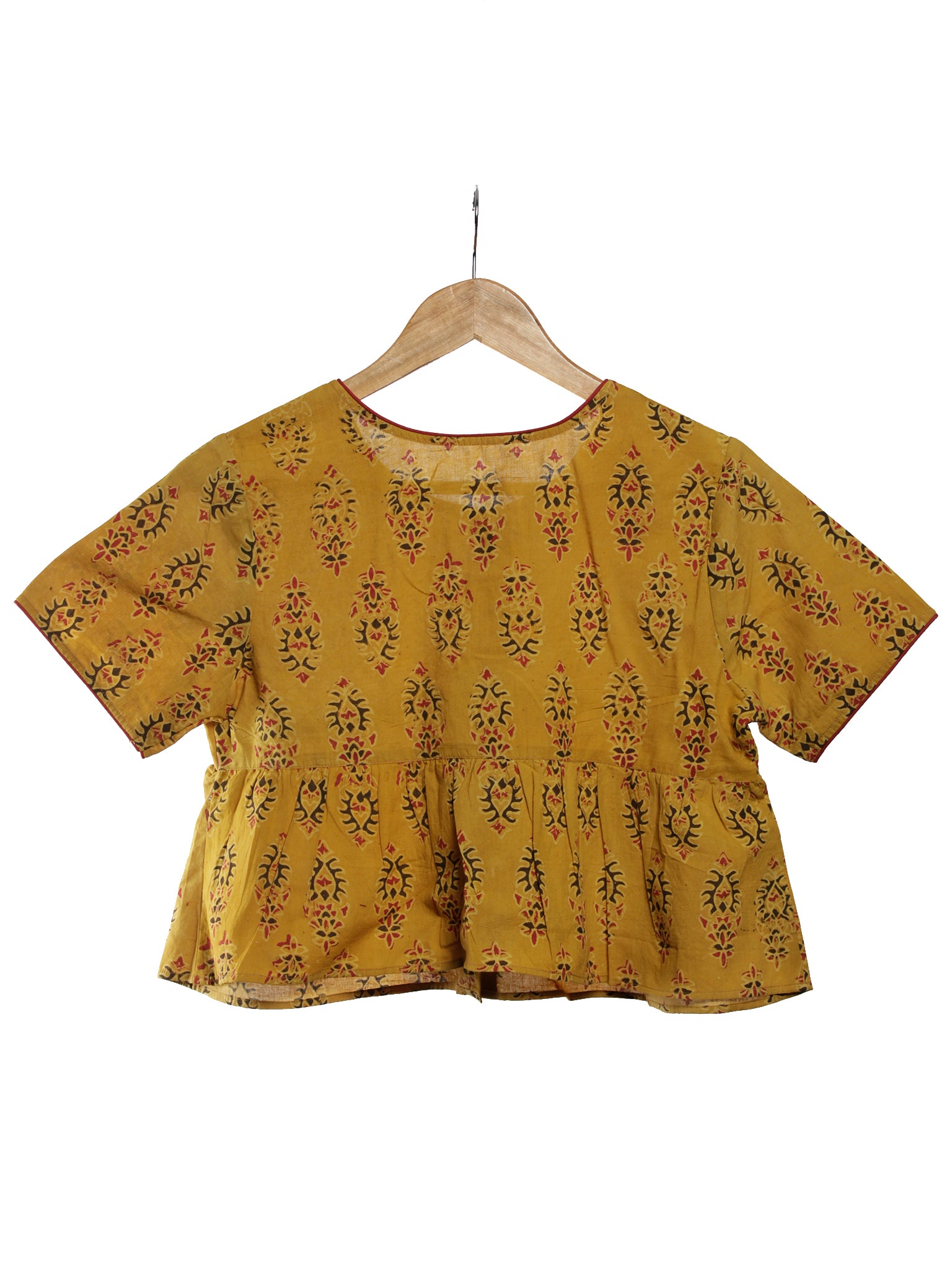 Mustard Black Maroon Ajrakh Hand Printed Cotton Peplum Blouse - B04F1618