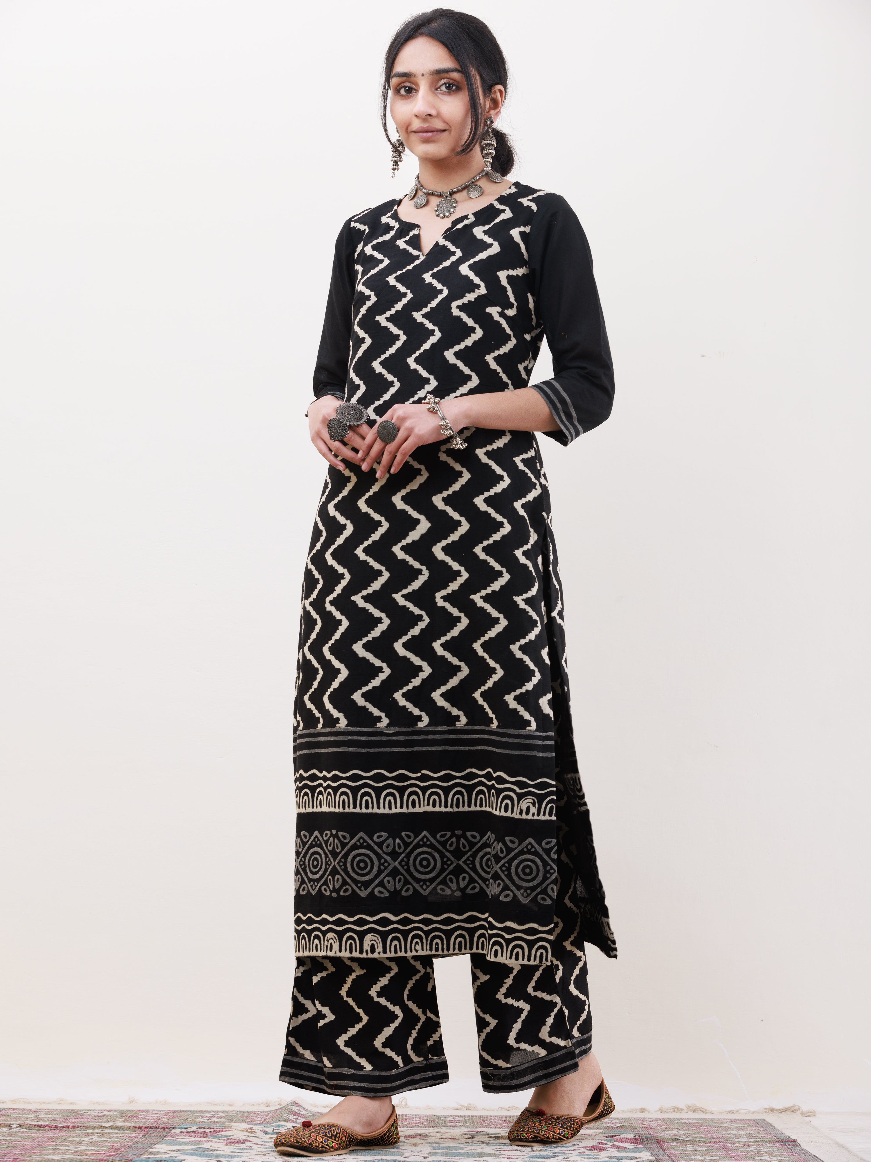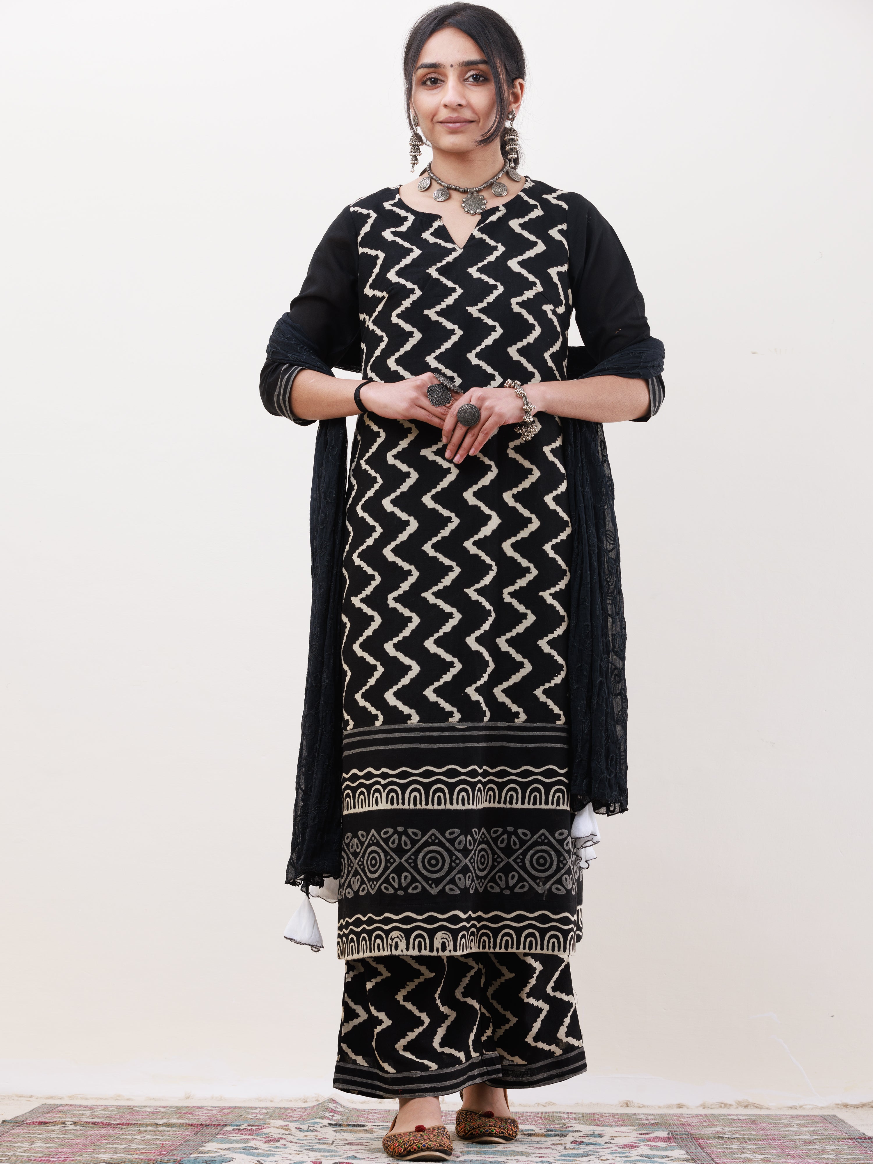 Product: This set contains Handcrafted Sanganeri Premium Cotton Kurta With Lining, 100% Cotton Pants and Georgette Dupatta.