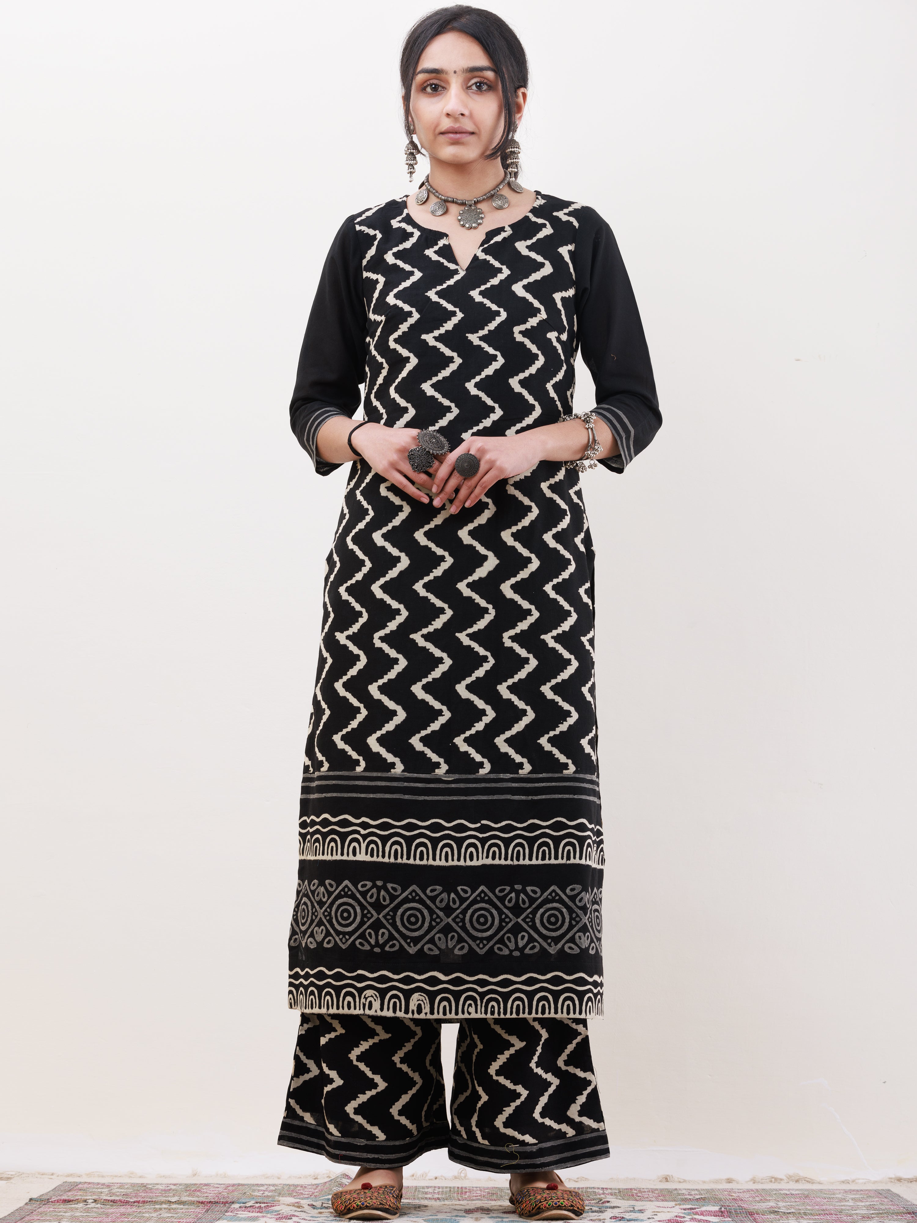 Fabric : Hand Block Printed. Kurta - Cotton (With Lining) . Pants - Cotton, Dupatta - Georgette
